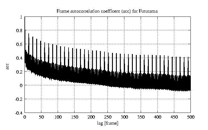 Frame statistics compression ratio YUV:MP4 7.39 File Size byte 1.6e+08 Video run time msec 1.2e+06 # of Frames - 30334 mean frame size byte 5.1e+03 var frame size - 5.7e+06 CoV of frame size - 0.46 min frame size byte 95 max frame size byte 43986 Mean bit rate bit/sec 1e+06 Peak bit rate bit/sec 8.8e+06 Peak/Mean of bit rate - 8.55