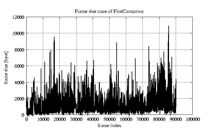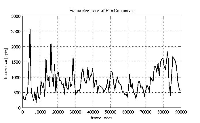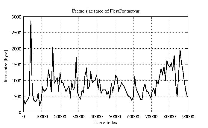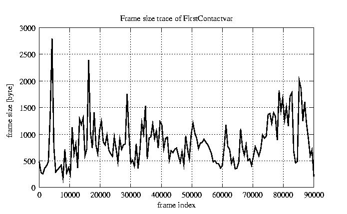 Frames, stuffed Rates Frames, original compression ratio YUV:H263 44.64 44.64 File size byte 7.7e+07 7.7e+07 Video run time msec 3.6e+06 3.6e+06 3.6e+06 # of Frames - 90084.00 50712.00 mean frame size byte 851.63 1512.82 var frame size - 1345217.61 1389361.42 CoV of frame size - 1.36 0.78 min frame size byte 0.00 24.00 max frame size byte 11625.00 11625.00 Peak/Mean frame - 13.65 7.68 Mean bit rate bit/sec 1.7e+05 Peak bit rate bit/sec 2.2e+06 Peak/Mean of bit rate - 13 CoV of bit rate - 0.84 max inter frame space frames 1.00 29.00