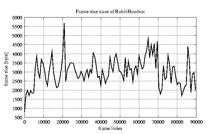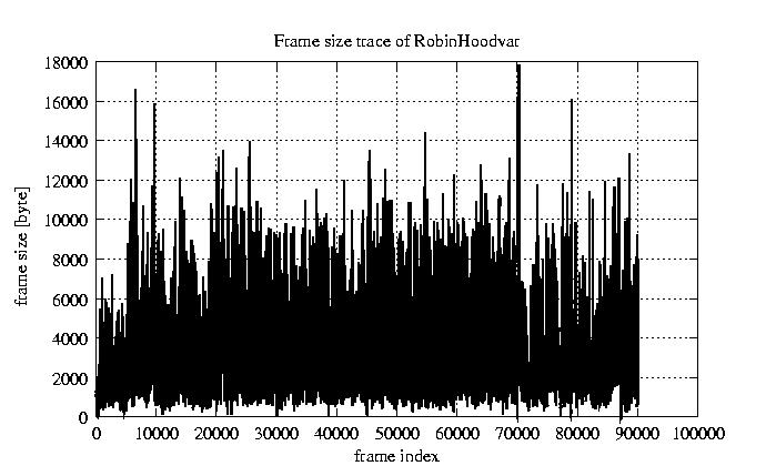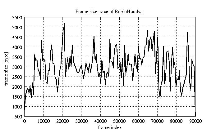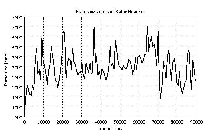 Frames, stuffed Rates Frames, original compression ratio YUV:H263 12.58 12.58 File size byte 2.7e+08 2.7e+08 Video run time msec 3.6e+06 3.6e+06 3.6e+06 # of Frames - 90084.00 71146.00 mean frame size byte 3021.80 3826.16 var frame size - 5646126.50 4071421.12 CoV of frame size - 0.79 0.53 min frame size byte 0.00 21.00 max frame size byte 19060.00 19060.00 Peak/Mean frame - 6.31 4.98 Mean bit rate bit/sec 6e+05 Peak bit rate bit/sec 3.6e+06 Peak/Mean of bit rate - 5.9 CoV of bit rate - 0.6 max inter frame space frames 1.00 29.00
