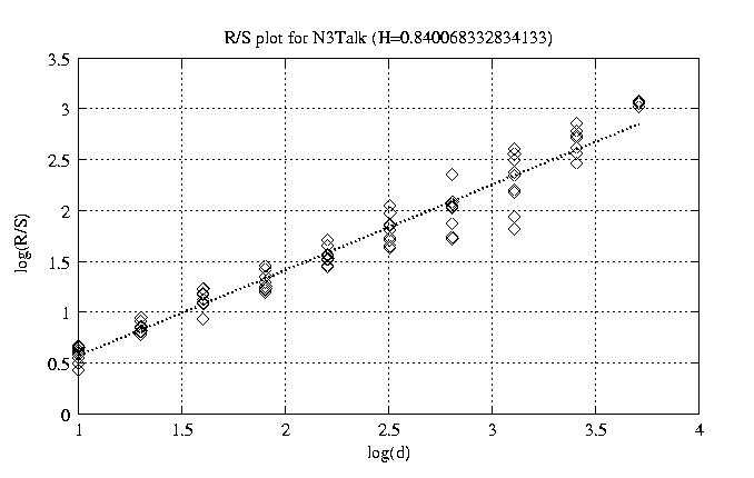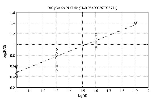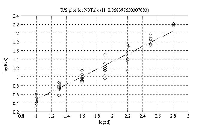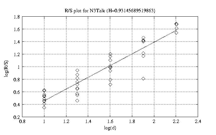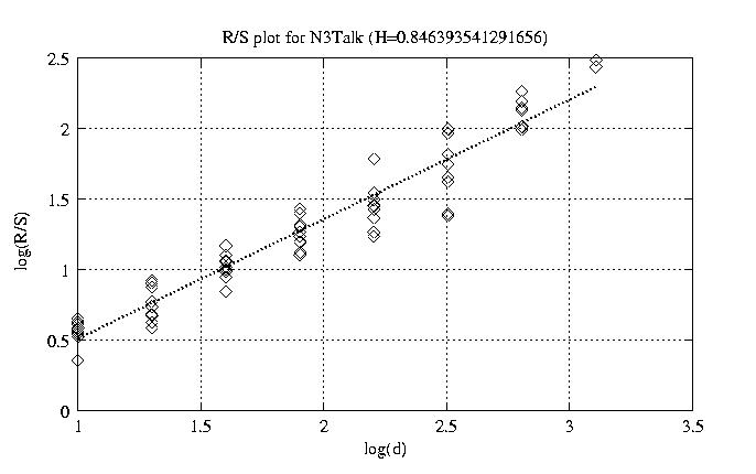 Aggregation level Hurst paramter RS plot bitrate plot 1 0.882 view view 12 0.840 view view 50 0.846 view view 100 0.868 view view 200 0.878 view view 300 0.931 view view 400 0.919 view view 500 0.943 view view 600 0.950 view view 700 1.012 view view 800 0.985 view view other plots
