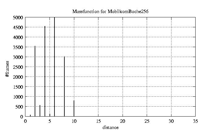 The following figures depict the probability density function p, the probability function F, and the inverse probability function G versus the encoded framelength in bytes.probability density