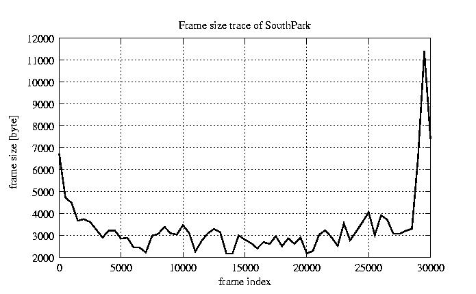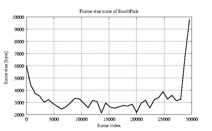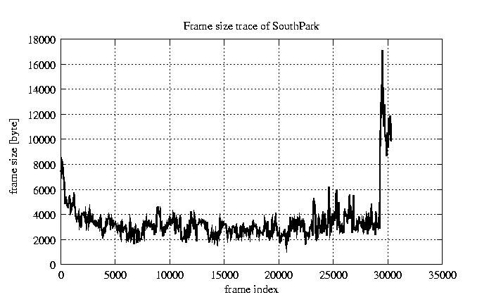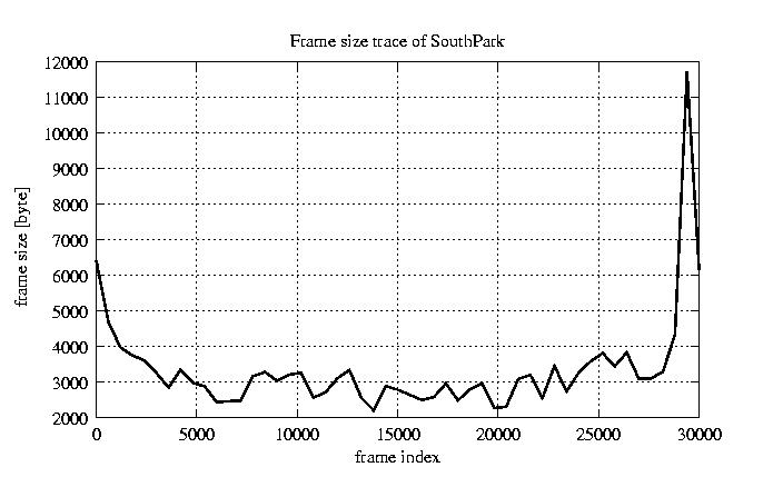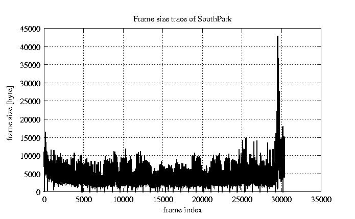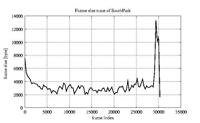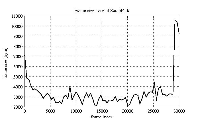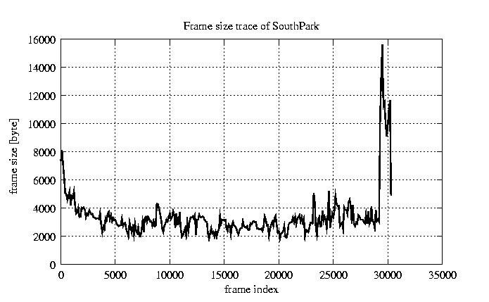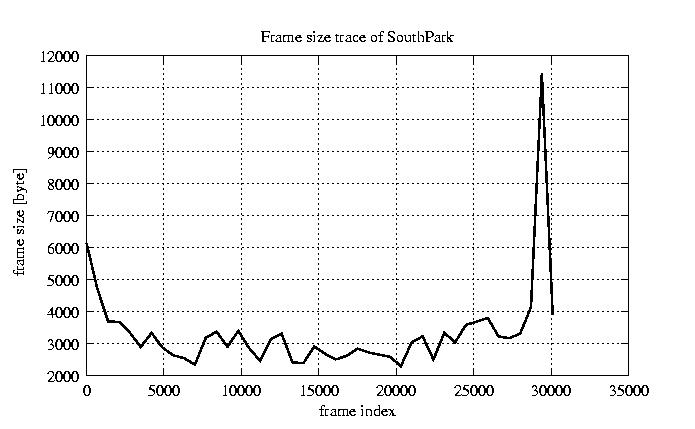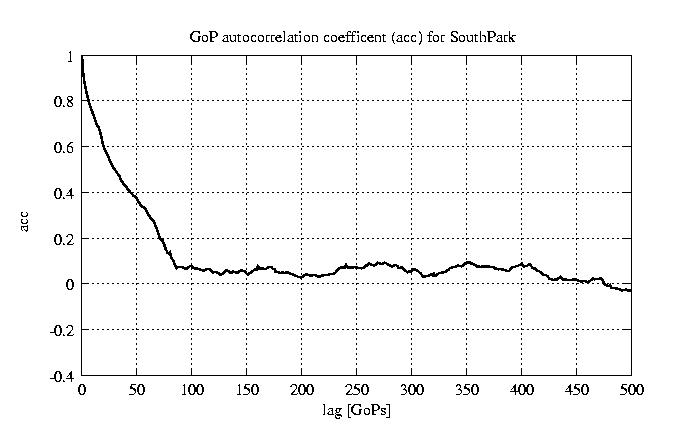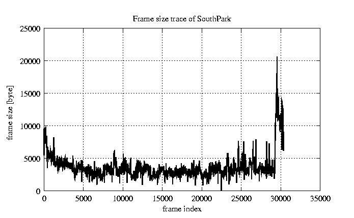 GoP statistics # of GoPs - 2528 mean GoP size byte 4.1e+04 var GoP size - 4.7e+08 CoV of GoP size - 0.53 min GoP size byte 0 max GoP size byte 214142 Mean bit rate bit/sec 6.8e+05 Peak bit rate bit/sec 3.6e+06 Peak/Mean of bit rate - 5.27