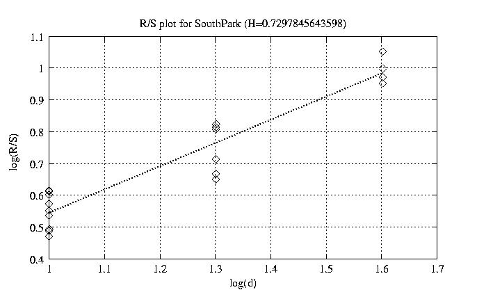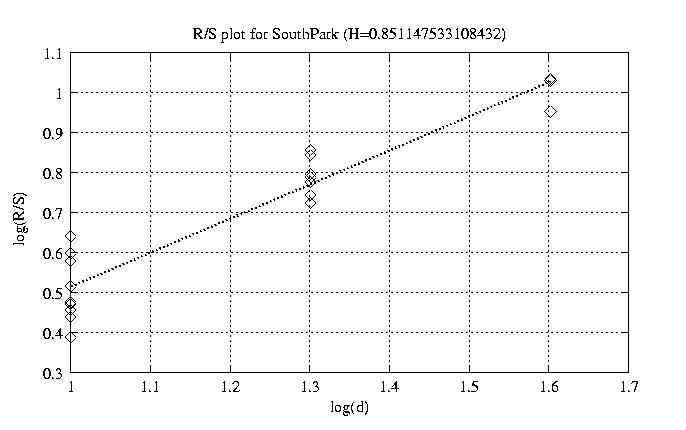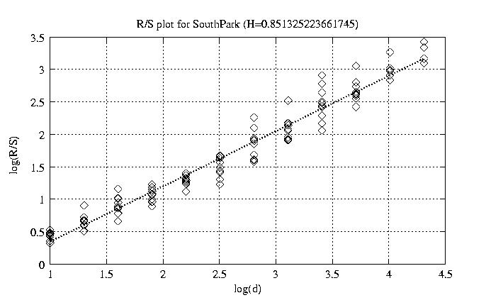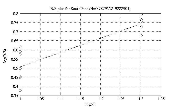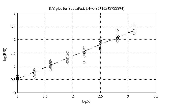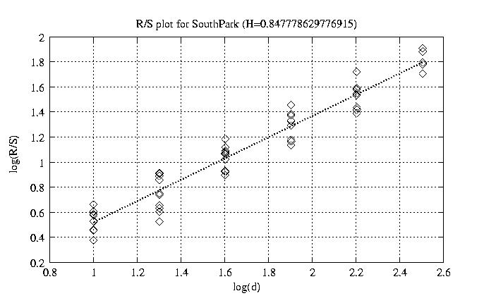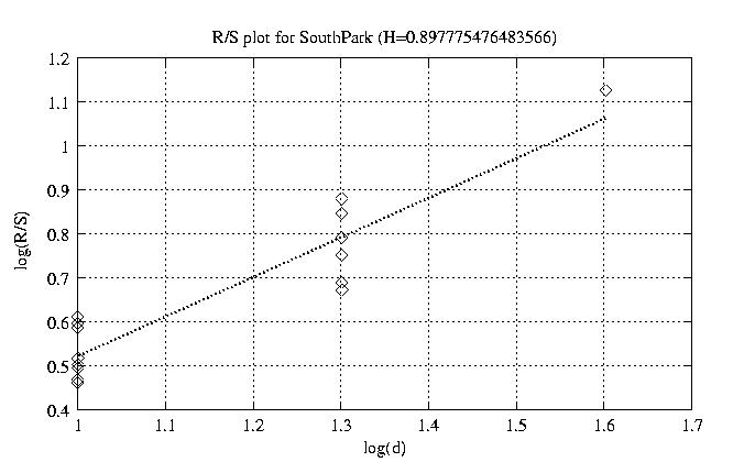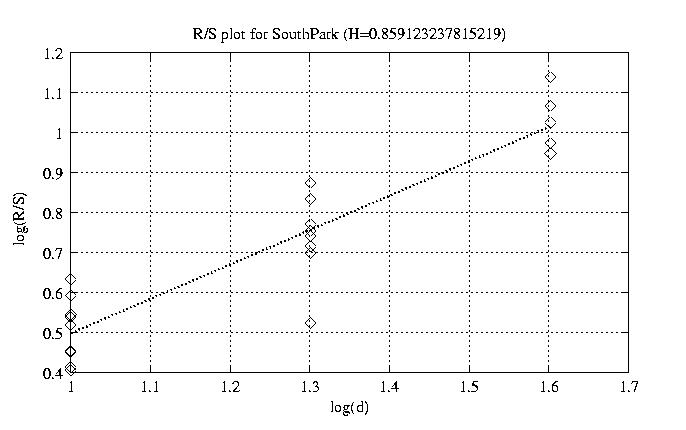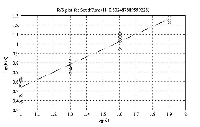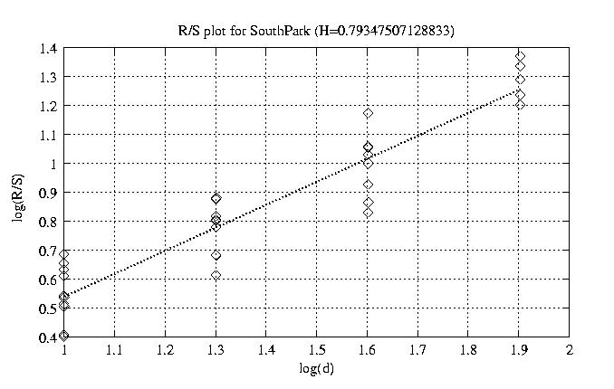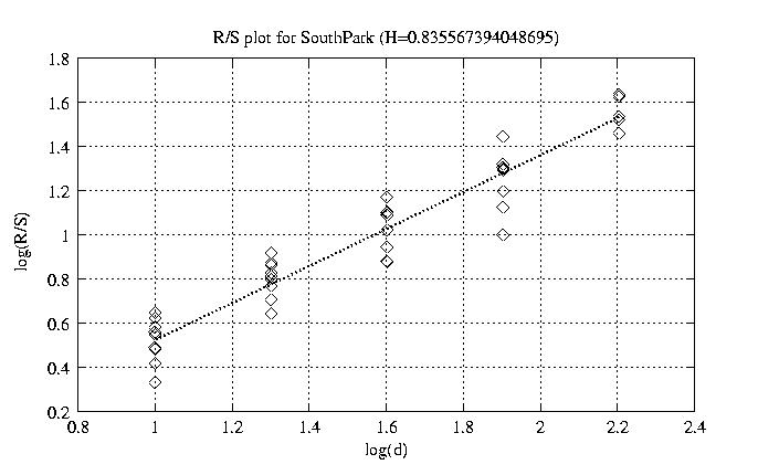 Hurst paramter with R/S plots and smoothed frame size trace