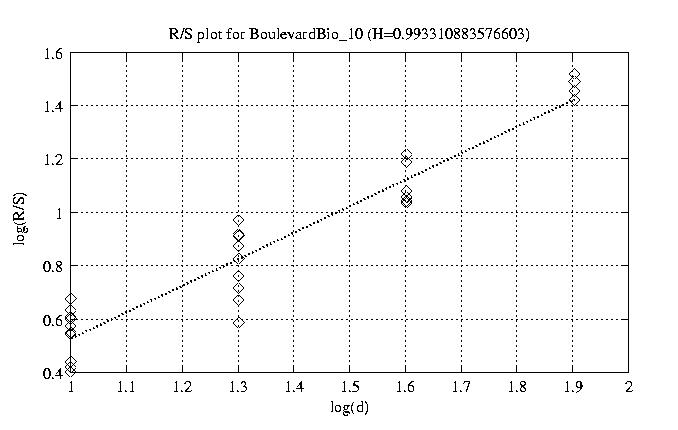 Aggregation level Hurst paramter RS plot bitrate plot 1 0.875 view view 12 0.913 view view 50 0.914 view view 100 0.923 view view 200 0.944 view view 300 0.985 view view 400 1.001 view view 500 1.001 view view 600 1.003 view view 700 0.993 view view 800 1.028 view view other plots