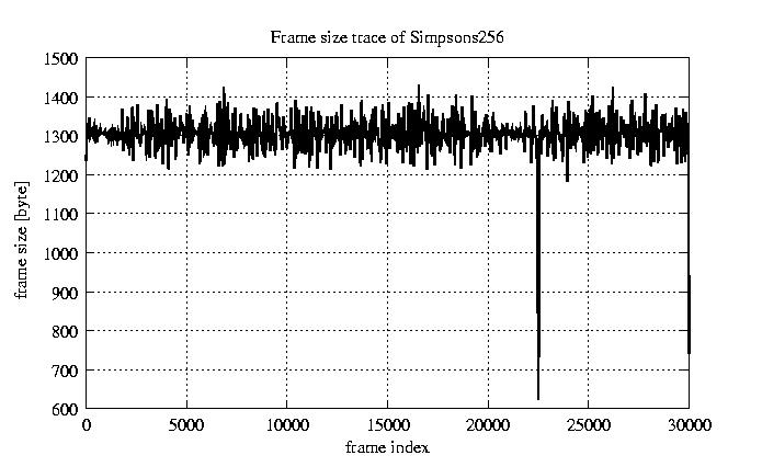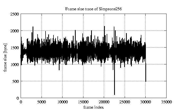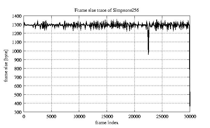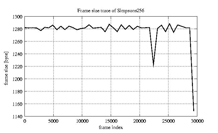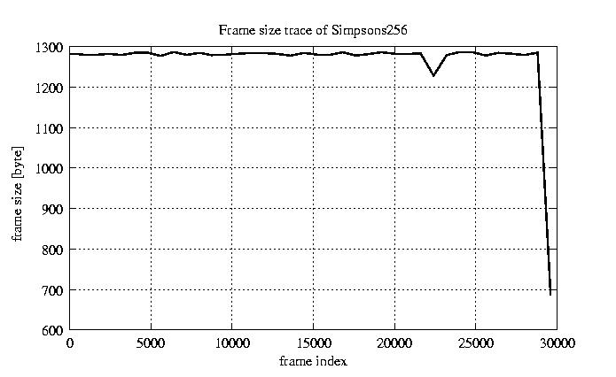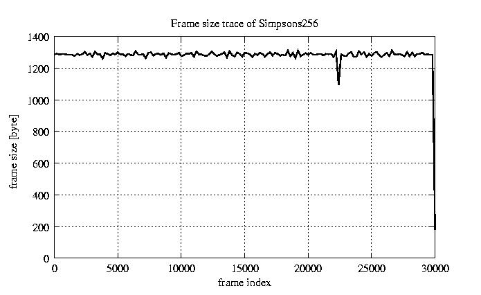 Frames, stuffed Rates Frames, original compression ratio YUV:H263 29.73 29.73 File size byte 3.8e+07 3.8e+07 Video run time msec 1.2e+06 1.2e+06 1.2e+06 # of Frames - 30027.00 9046.00 mean frame size byte 1278.69 4244.44 var frame size - 4534666.88 2464062.21 CoV of frame size - 1.67 0.37 min frame size byte 0.00 953.00 max frame size byte 17753.00 17753.00 Peak/Mean frame - 13.88 4.18 Mean bit rate bit/sec 2.6e+05 Peak bit rate bit/sec 1.5e+06 Peak/Mean of bit rate - 6 CoV of bit rate - 0.44 max inter frame space frames 1.00 33.00