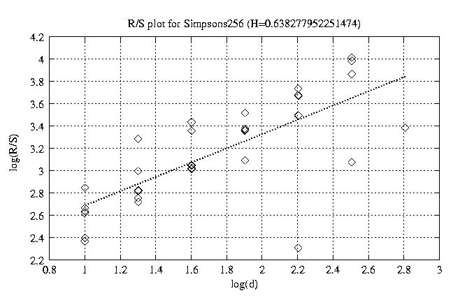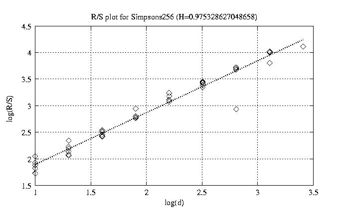 Hurst paramter with R/S plots and smoothed frame size trace