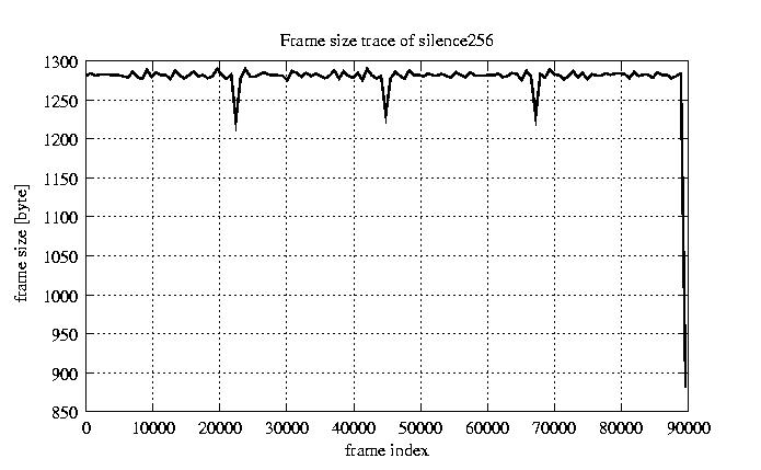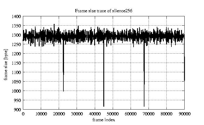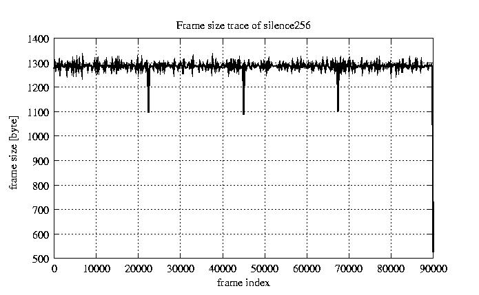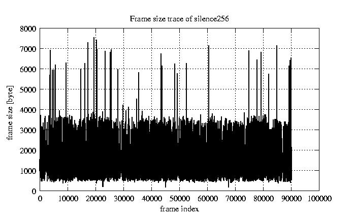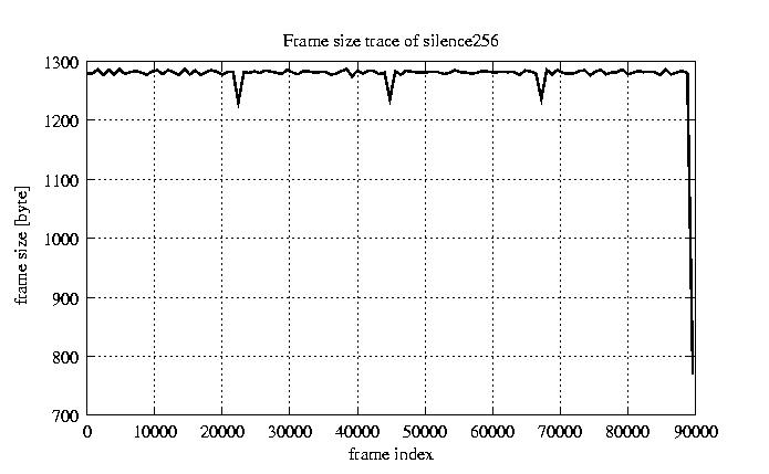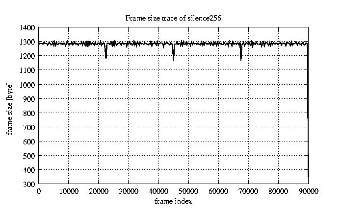 Frames, stuffed Rates Frames, original compression ratio YUV:H263 29.73 29.73 File size byte 1.2e+08 1.2e+08 Video run time msec 3.6e+06 3.6e+06 3.6e+06 # of Frames - 90082.00 25861.00 mean frame size byte 1278.61 4453.81 var frame size - 4912117.99 2968642.45 CoV of frame size - 1.73 0.39 min frame size byte 0.00 743.00 max frame size byte 22247.00 22247.00 Peak/Mean frame - 17.40 5.00 Mean bit rate bit/sec 2.6e+05 Peak bit rate bit/sec 1.5e+06 Peak/Mean of bit rate - 5.9 CoV of bit rate - 0.42 max inter frame space frames 1.00 37.00