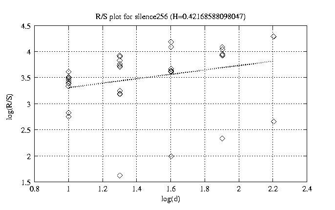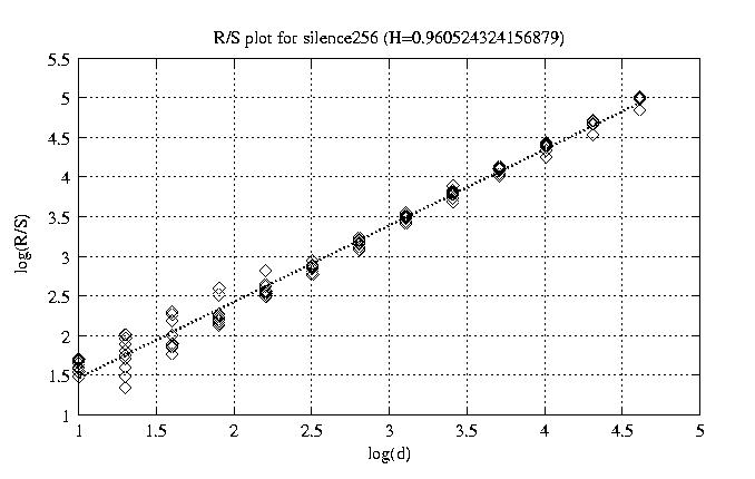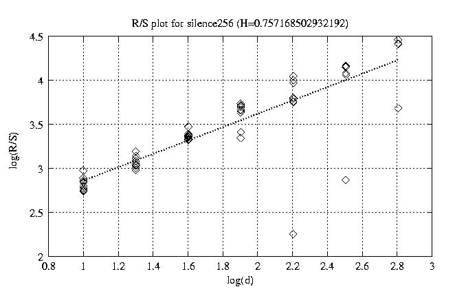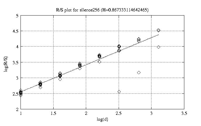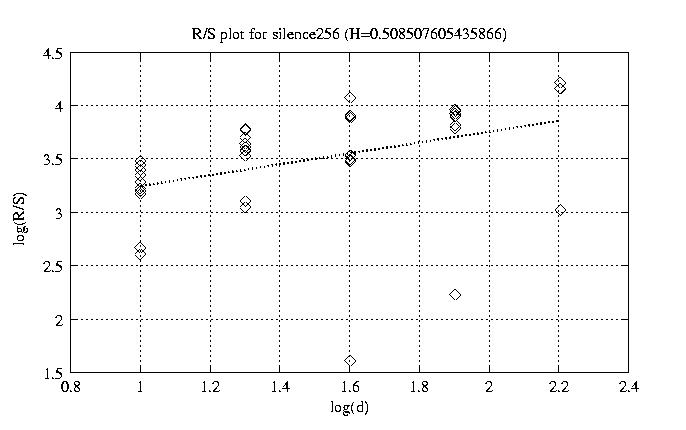 Hurst paramter with R/S plots and smoothed frame size trace