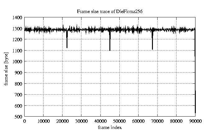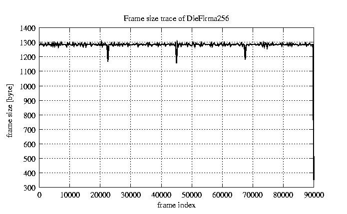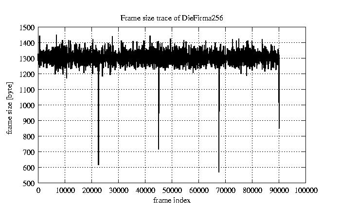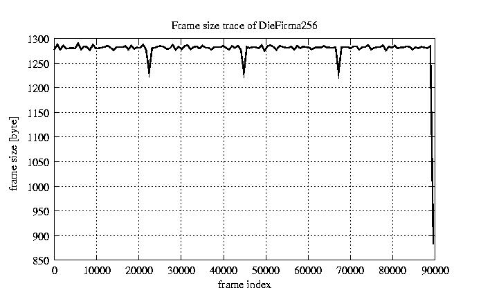 Frames, stuffed Rates Frames, original compression ratio YUV:H263 29.73 29.73 File size byte 1.2e+08 1.2e+08 Video run time msec 3.6e+06 3.6e+06 3.6e+06 # of Frames - 90080.00 24685.00 mean frame size byte 1278.73 4666.32 var frame size - 5005649.35 2458855.57 CoV of frame size - 1.75 0.34 min frame size byte 0.00 31.00 max frame size byte 9826.00 9826.00 Peak/Mean frame - 7.68 2.11 Mean bit rate bit/sec 2.6e+05 Peak bit rate bit/sec 1.4e+06 Peak/Mean of bit rate - 5.4 CoV of bit rate - 0.46 max inter frame space frames 1.00 31.00