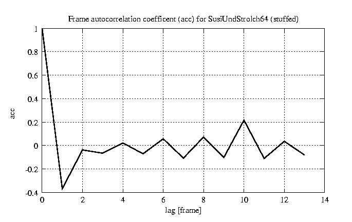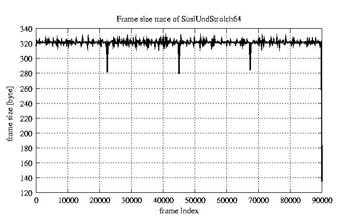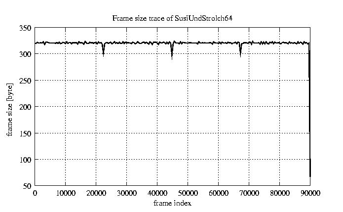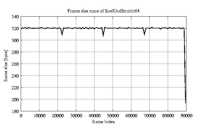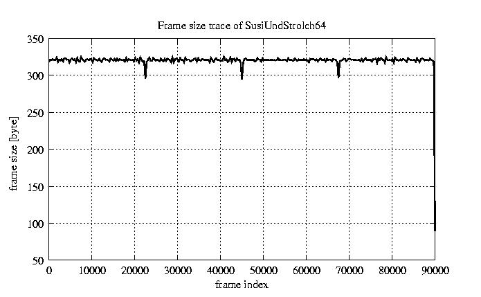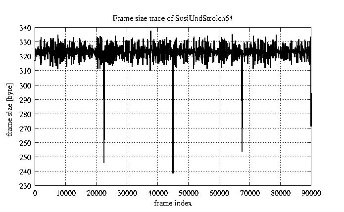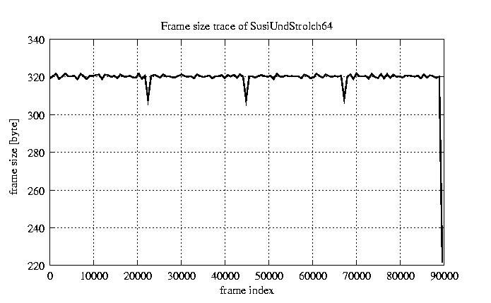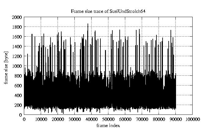 Frames, stuffed Rates Frames, original compression ratio YUV:H263 118.95 118.95 File size byte 2.9e+07 2.9e+07 Video run time msec 3.6e+06 3.6e+06 3.6e+06 # of Frames - 90083.00 29046.00 mean frame size byte 319.60 991.21 var frame size - 266811.38 161778.23 CoV of frame size - 1.62 0.41 min frame size byte 0.00 33.00 max frame size byte 4070.00 4070.00 Peak/Mean frame - 12.73 4.11 Mean bit rate bit/sec 6.4e+04 Peak bit rate bit/sec 3.7e+05 Peak/Mean of bit rate - 5.8 CoV of bit rate - 0.39 max inter frame space frames 1.00 30.00