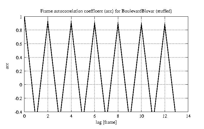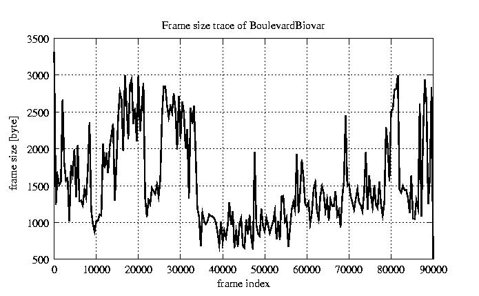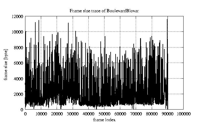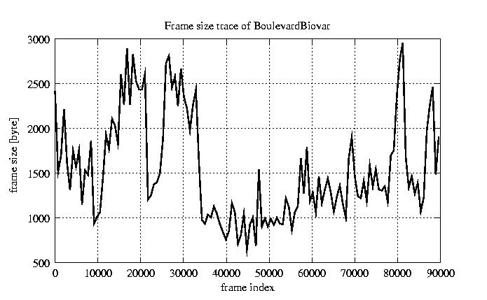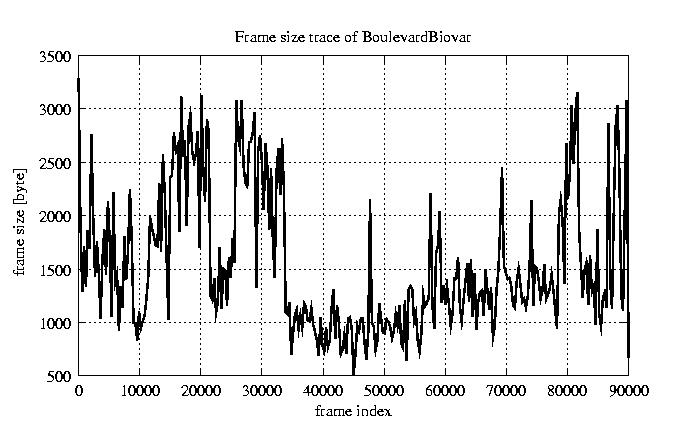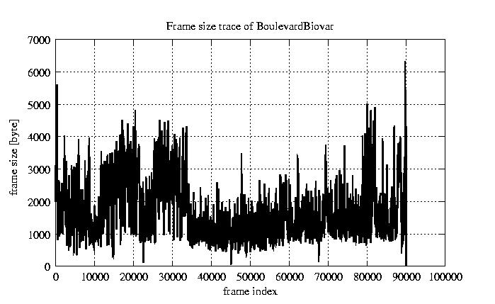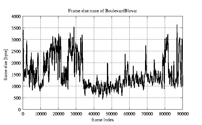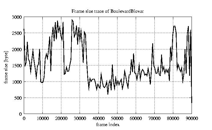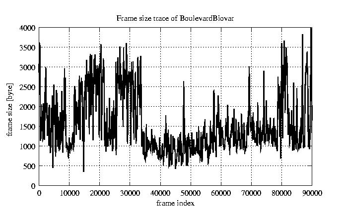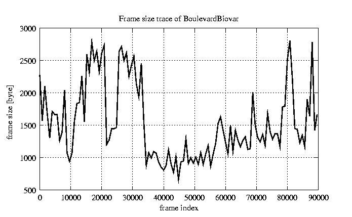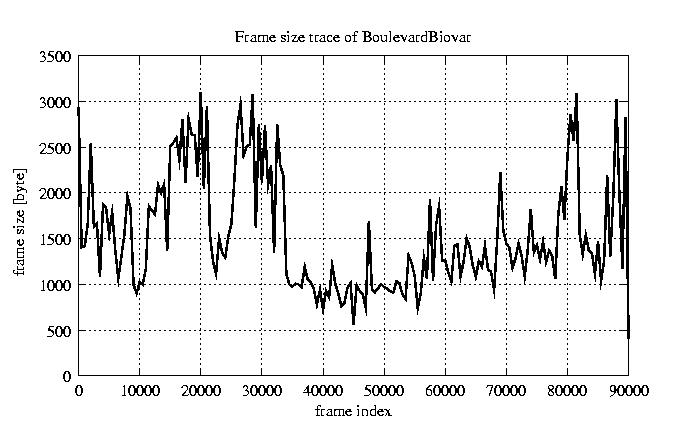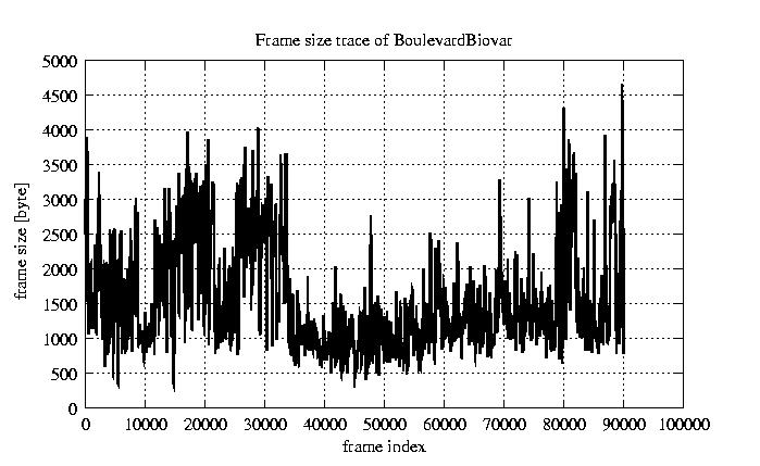 Frames, stuffed Rates Frames, original compression ratio YUV:H263 24.55 24.55 File size byte 1.4e+08 1.4e+08 Video run time msec 3.6e+06 3.6e+06 3.6e+06 # of Frames - 90084.00 46487.00 mean frame size byte 1548.55 3000.82 var frame size - 3596394.34 2611163.33 CoV of frame size - 1.22 0.54 min frame size byte 0.00 19.00 max frame size byte 11643.00 11643.00 Peak/Mean frame - 7.52 3.88 Mean bit rate bit/sec 3.1e+05 Peak bit rate bit/sec 2.3e+06 Peak/Mean of bit rate - 7.5 CoV of bit rate - 0.59 max inter frame space frames 1.00 29.00