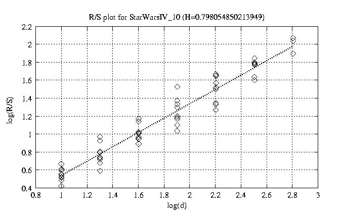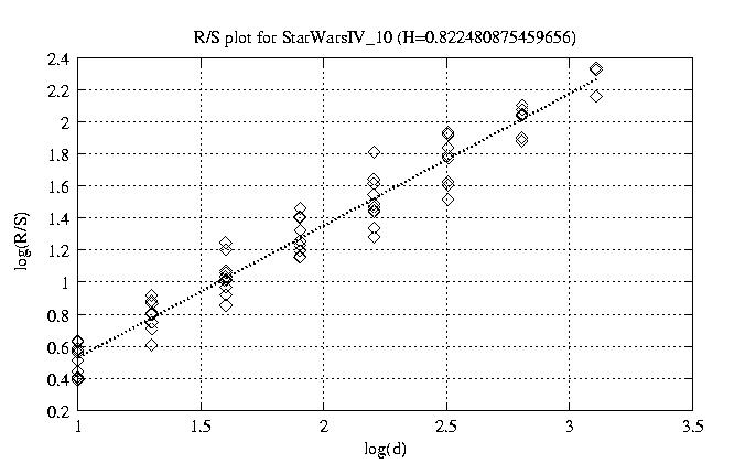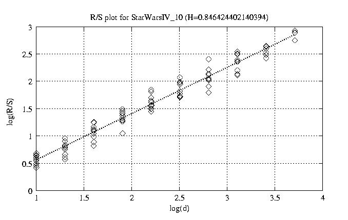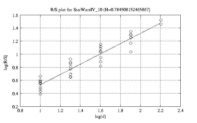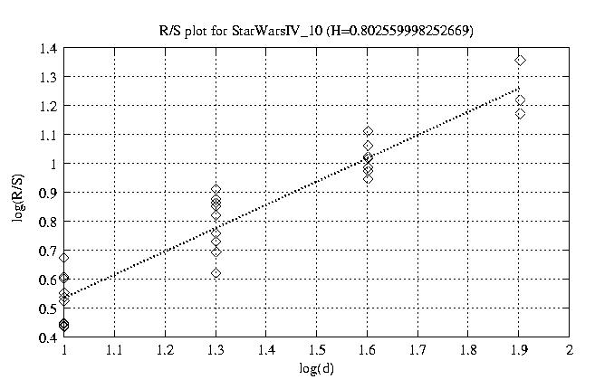 Hurst paramter with R/S plots and smoothed frame size trace