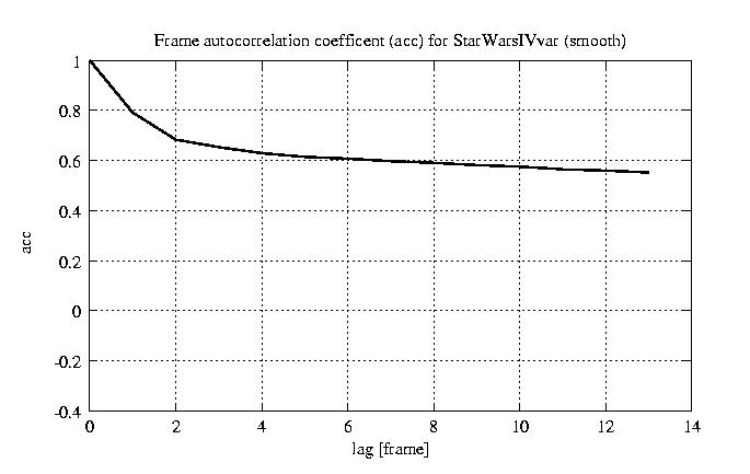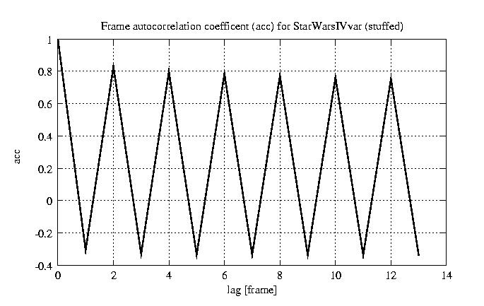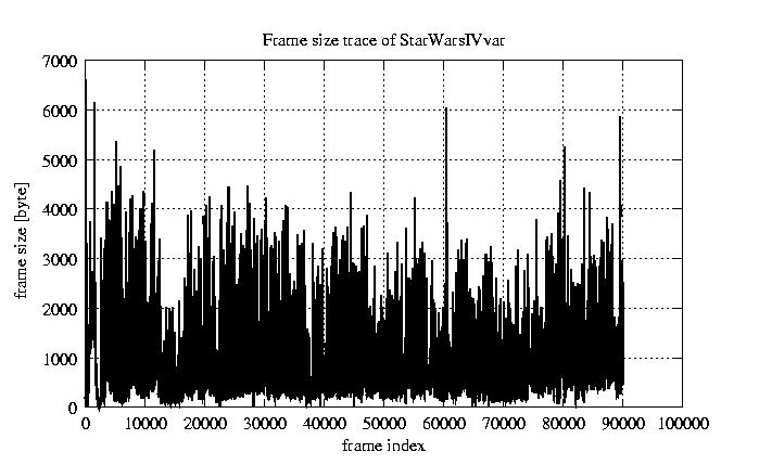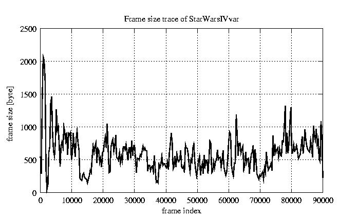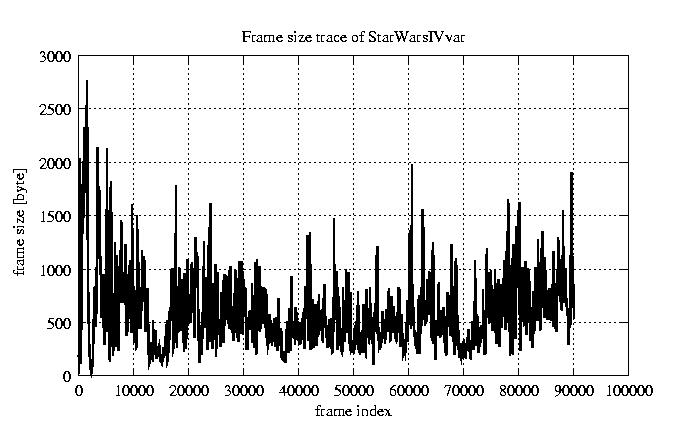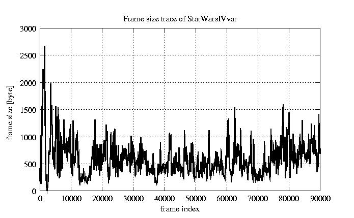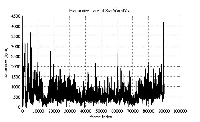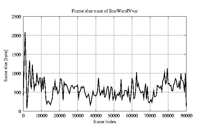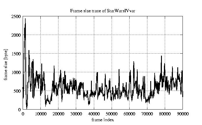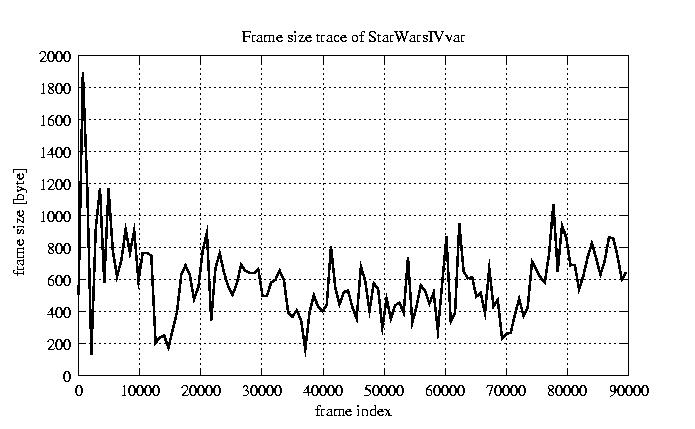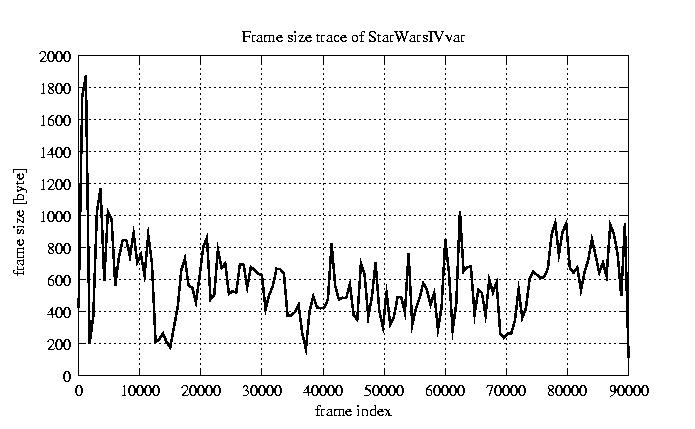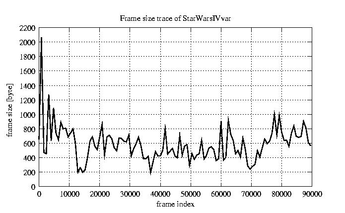 Frames, stuffed Rates Frames, original compression ratio YUV:H263 64.48 64.48 File size byte 5.3e+07 5.3e+07 Video run time msec 3.6e+06 3.6e+06 3.6e+06 # of Frames - 90084.00 49646.00 mean frame size byte 589.63 1069.90 var frame size - 536954.04 460474.61 CoV of frame size - 1.24 0.63 min frame size byte 0.00 20.00 max frame size byte 8989.00 8989.00 Peak/Mean frame - 15.25 8.40 Mean bit rate bit/sec 1.2e+05 Peak bit rate bit/sec 1.3e+06 Peak/Mean of bit rate - 11 CoV of bit rate - 0.76 max inter frame space frames 1.00 29.00