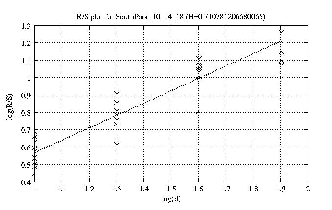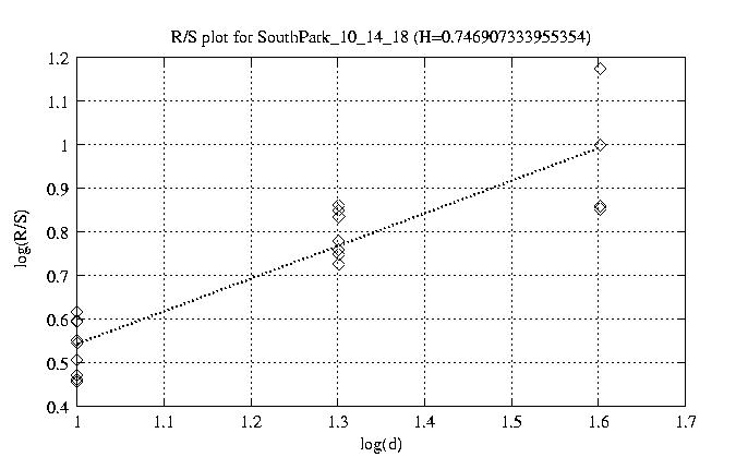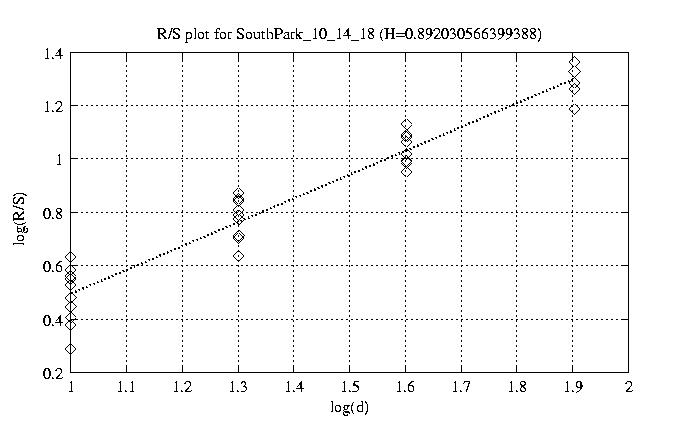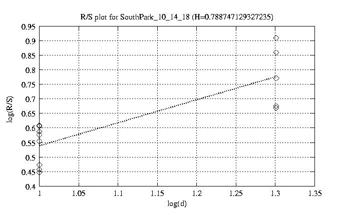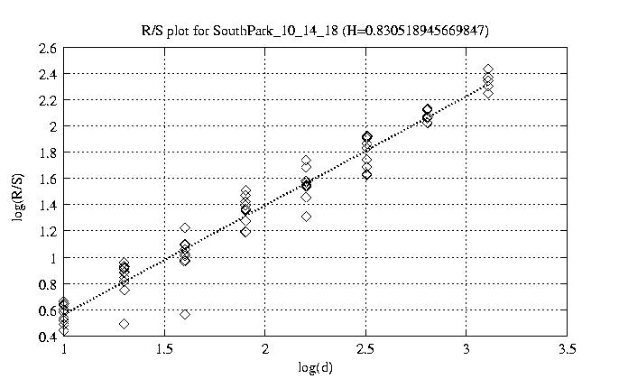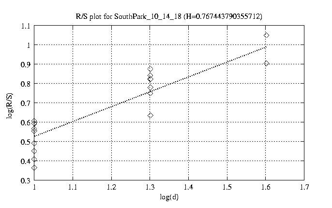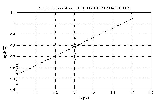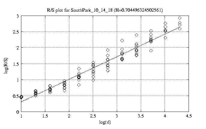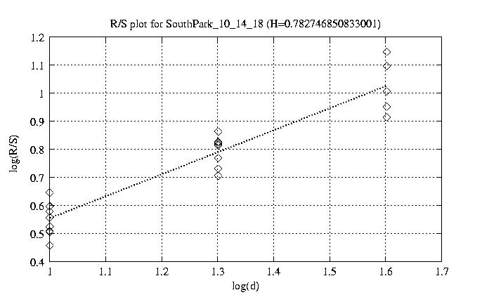 Hurst paramter with R/S plots and smoothed frame size trace