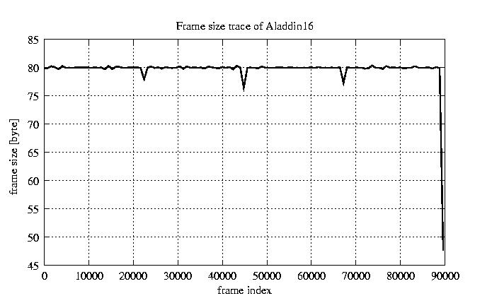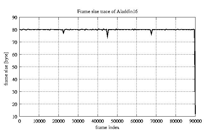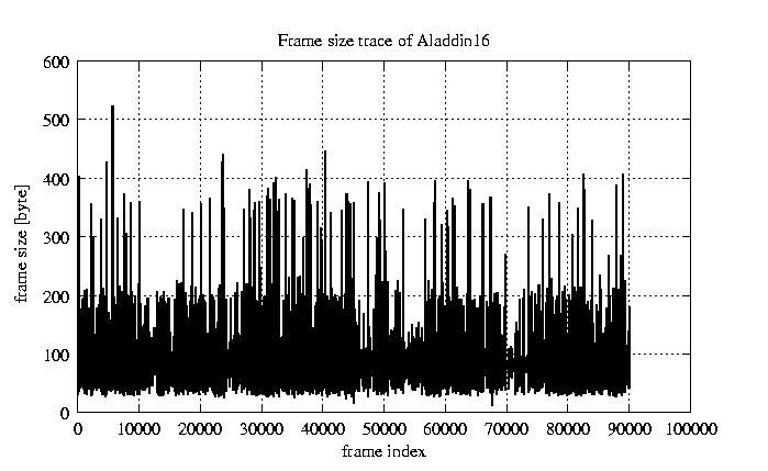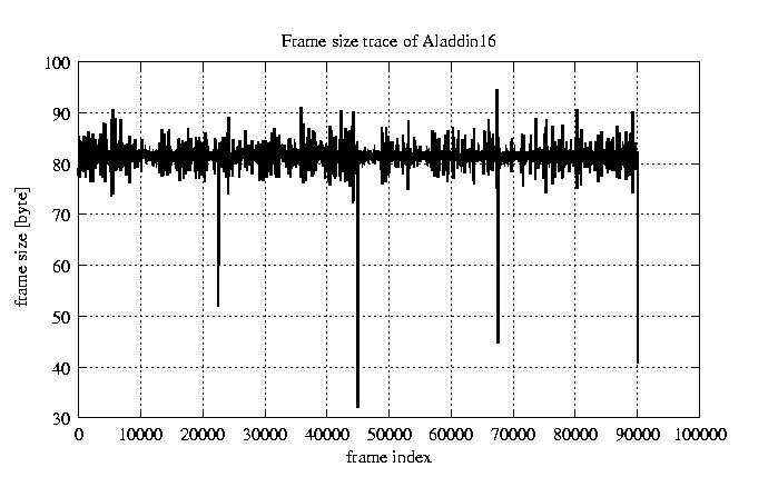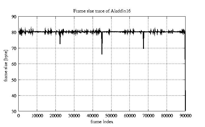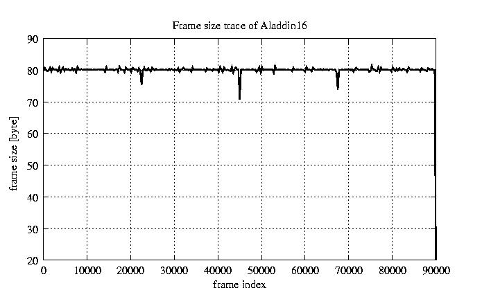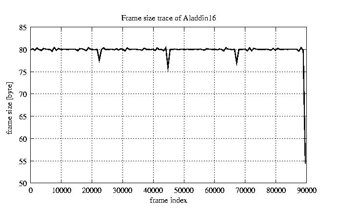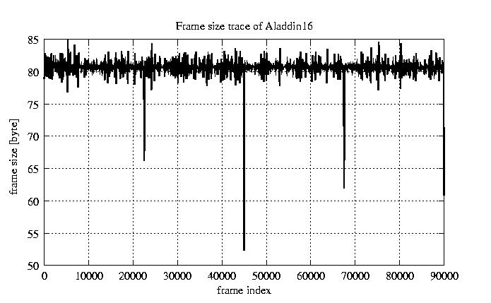 Frames, stuffed Rates Frames, original compression ratio YUV:H263 476.34 476.34 File size byte 7.2e+06 7.2e+06 Video run time msec 3.6e+06 3.6e+06 3.6e+06 # of Frames - 90074.00 22067.00 mean frame size byte 79.81 325.78 var frame size - 31474.06 48341.52 CoV of frame size - 2.22 0.67 min frame size byte 0.00 22.00 max frame size byte 3880.00 3880.00 Peak/Mean frame - 48.61 11.91 Mean bit rate bit/sec 1.6e+04 Peak bit rate bit/sec 1e+05 Peak/Mean of bit rate - 6.6 CoV of bit rate - 0.31 max inter frame space frames 1.00 46.00