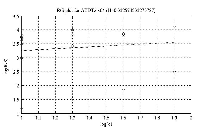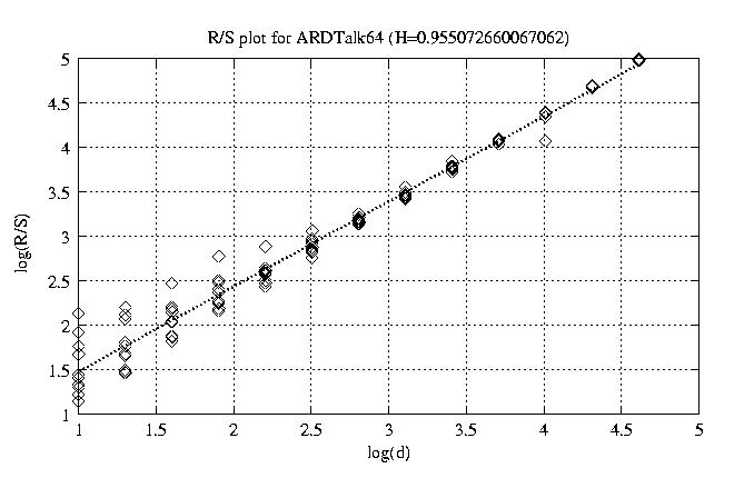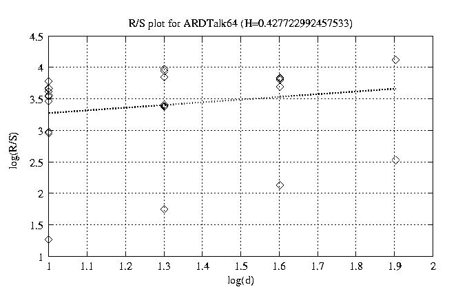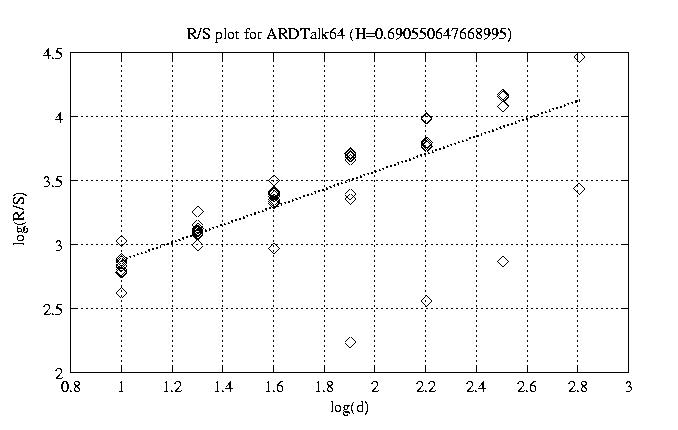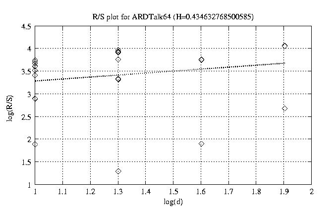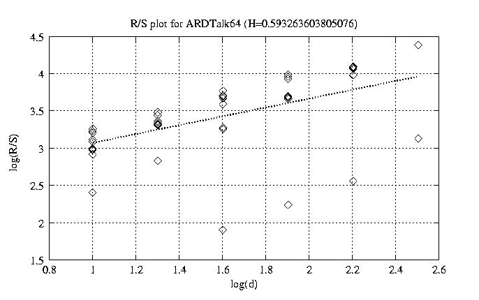 Aggregation level Hurst paramter RS plot bitrate plot 1 0.955 view view 12 0.921 view view 50 0.819 view view 100 0.691 view view 200 0.593 view view 300 0.475 view view 400 0.449 view view 500 0.170 view view 600 0.435 view view 700 0.428 view view 800 0.333 view view other plots
