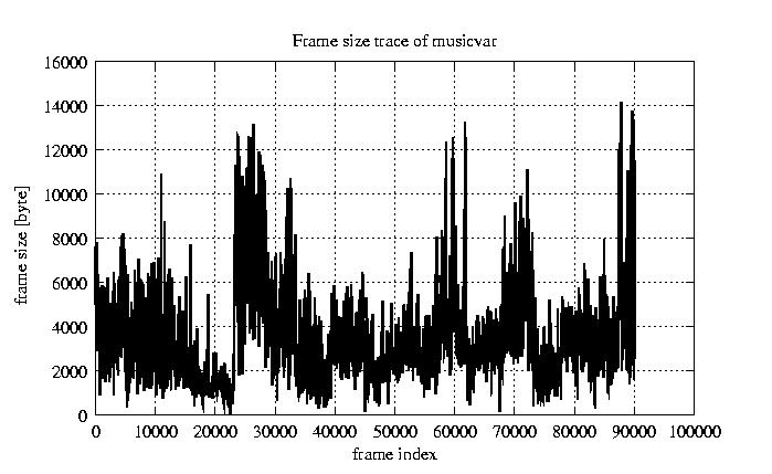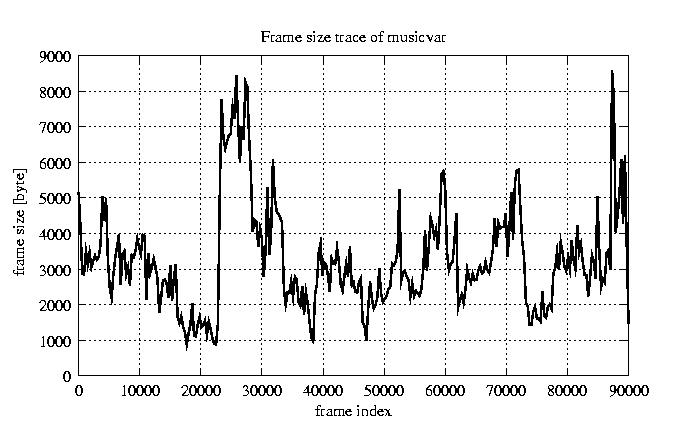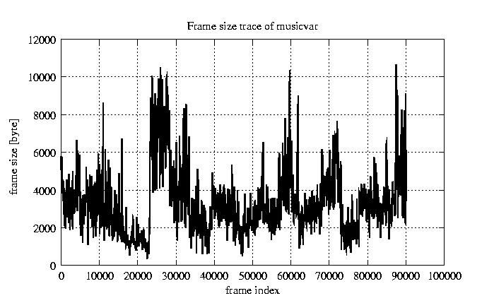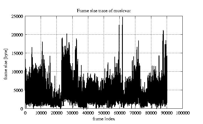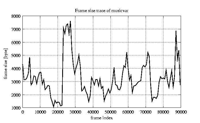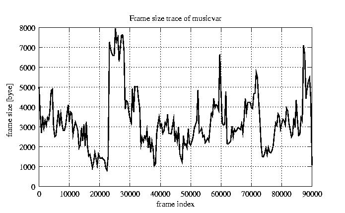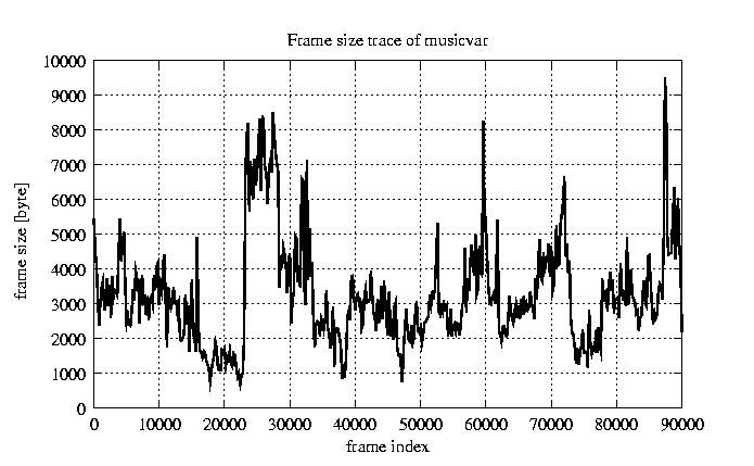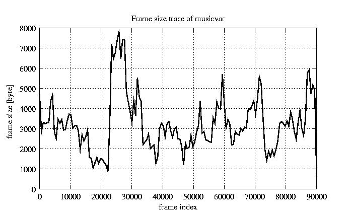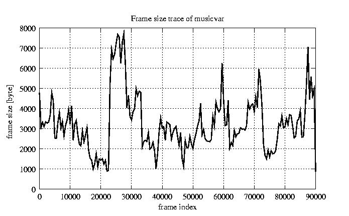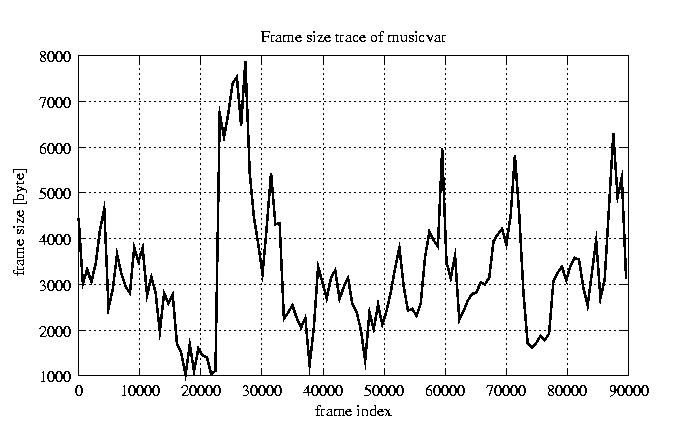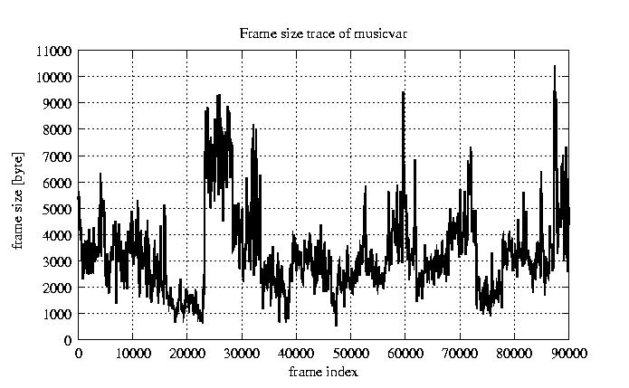 Frames, stuffed Rates Frames, original compression ratio YUV:H263 11.65 11.65 File size byte 2.9e+08 2.9e+08 Video run time msec 3.6e+06 3.6e+06 3.6e+06 # of Frames - 90084.00 59534.00 mean frame size byte 3261.91 4935.77 var frame size - 10455464.57 7558893.81 CoV of frame size - 0.99 0.56 min frame size byte 0.00 93.00 max frame size byte 24782.00 24782.00 Peak/Mean frame - 7.60 5.02 Mean bit rate bit/sec 6.5e+05 Peak bit rate bit/sec 5e+06 Peak/Mean of bit rate - 7.6 CoV of bit rate - 0.66 max inter frame space frames 1.00 29.00