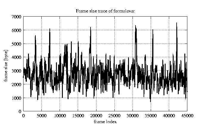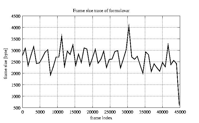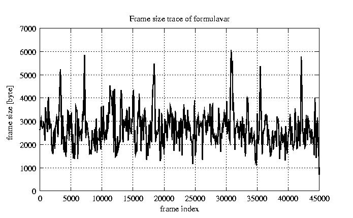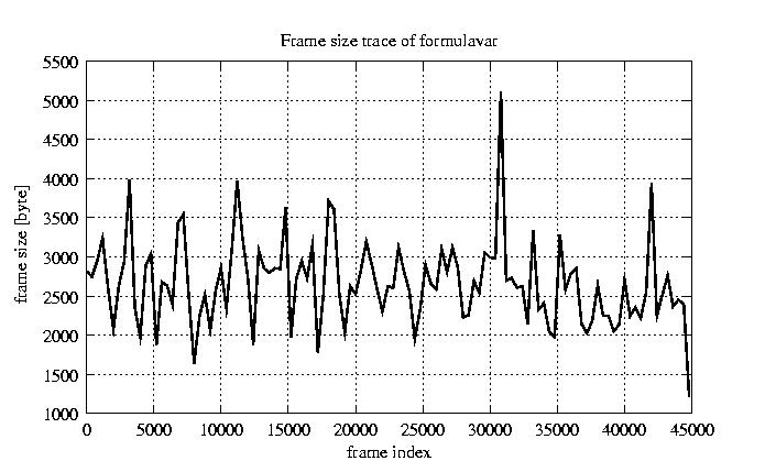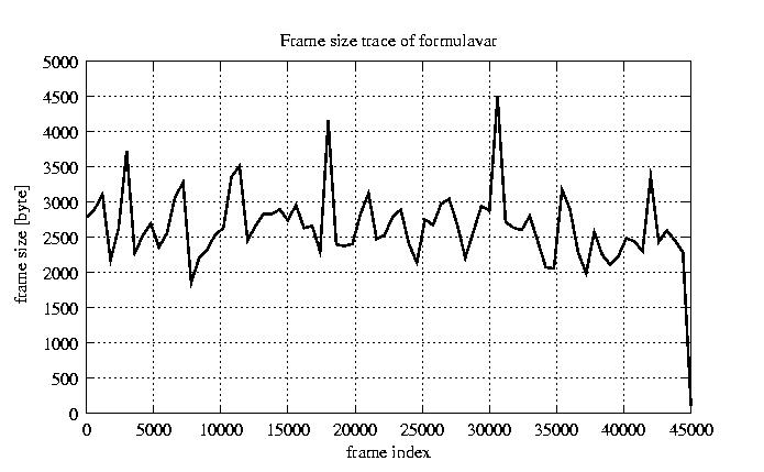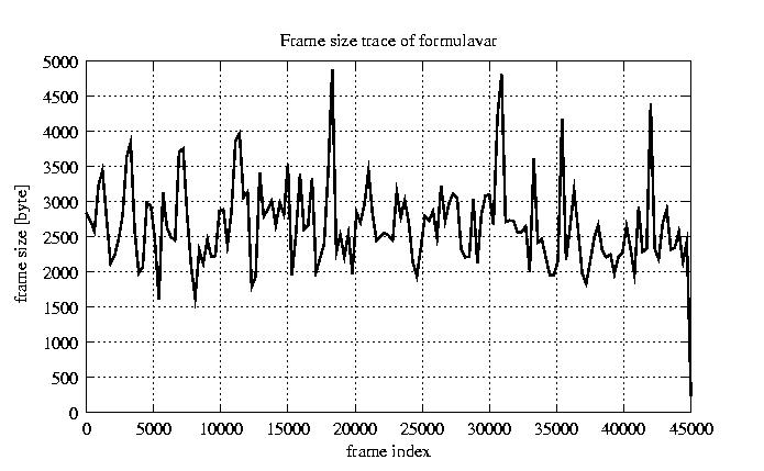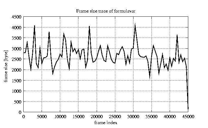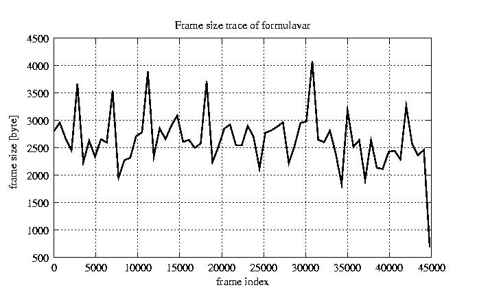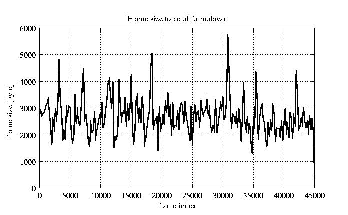 Frames, stuffed Rates Frames, original compression ratio YUV:H263 14.25 14.25 File size byte 1.2e+08 1.2e+08 Video run time msec 1.8e+06 1.8e+06 1.8e+06 # of Frames - 45028.00 31396.00 mean frame size byte 2667.84 3826.20 var frame size - 5321269.23 3199550.06 CoV of frame size - 0.86 0.47 min frame size byte 0.00 438.00 max frame size byte 14114.00 14114.00 Peak/Mean frame - 5.29 3.69 Mean bit rate bit/sec 5.3e+05 Peak bit rate bit/sec 2.8e+06 Peak/Mean of bit rate - 5.3 CoV of bit rate - 0.47 max inter frame space frames 1.00 29.00
