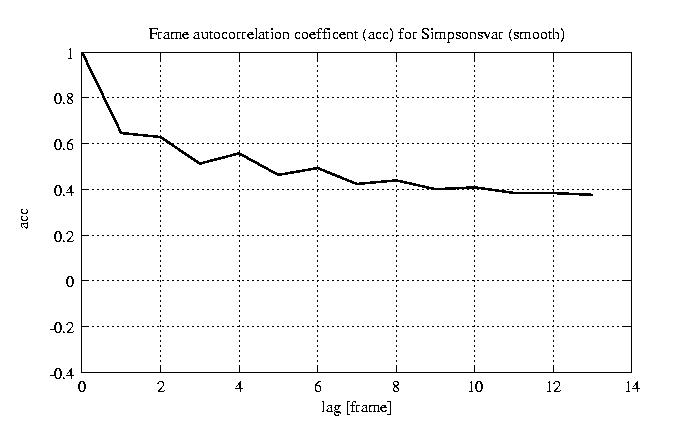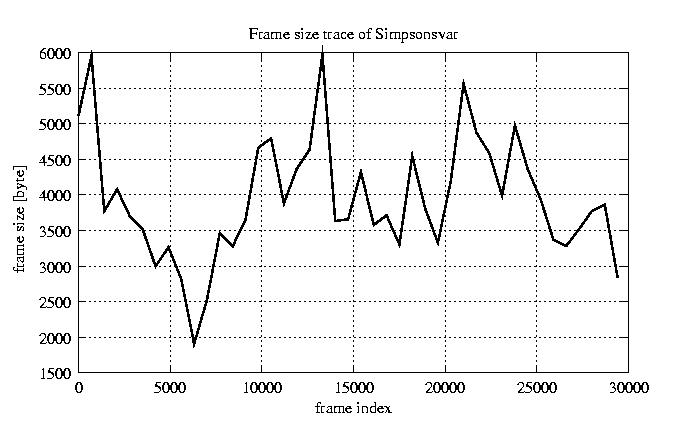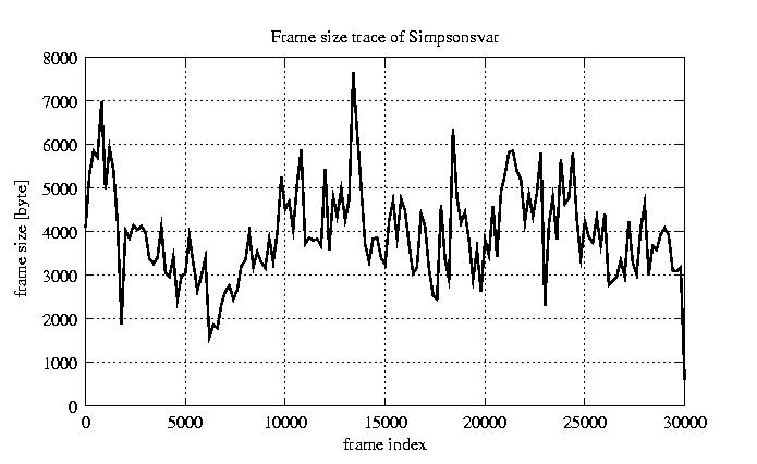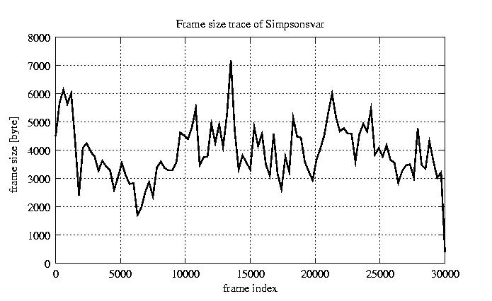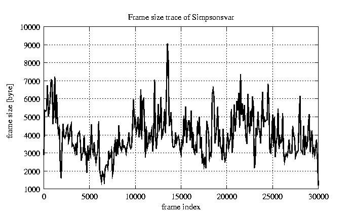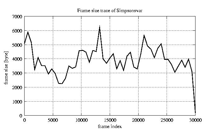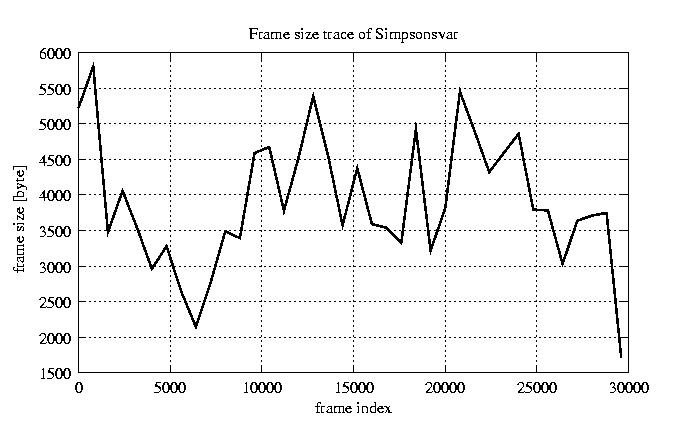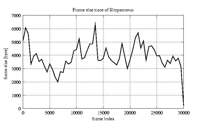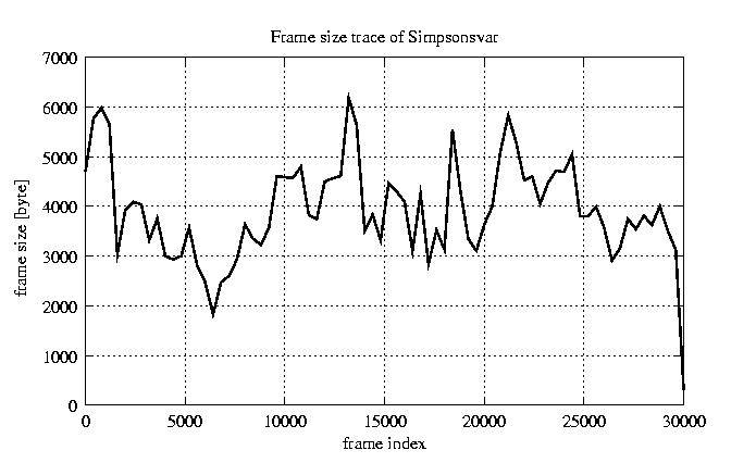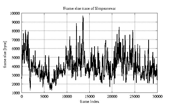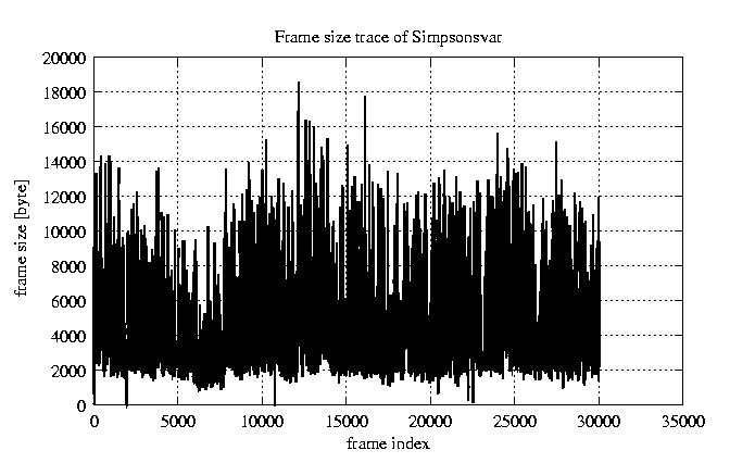 Frames, stuffed Rates Frames, original compression ratio YUV:H263 9.64 9.64 File size byte 1.2e+08 1.2e+08 Video run time msec 1.2e+06 1.2e+06 1.2e+06 # of Frames - 30028.00 20671.00 mean frame size byte 3941.67 5725.91 var frame size - 10130772.88 4499885.09 CoV of frame size - 0.81 0.37 min frame size byte 0.00 25.00 max frame size byte 19507.00 19507.00 Peak/Mean frame - 4.95 3.41 Mean bit rate bit/sec 7.9e+05 Peak bit rate bit/sec 3.7e+06 Peak/Mean of bit rate - 4.7 CoV of bit rate - 0.54 max inter frame space frames 1.00 29.00