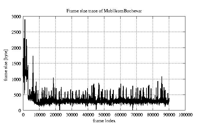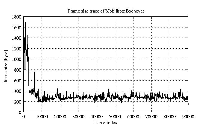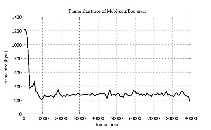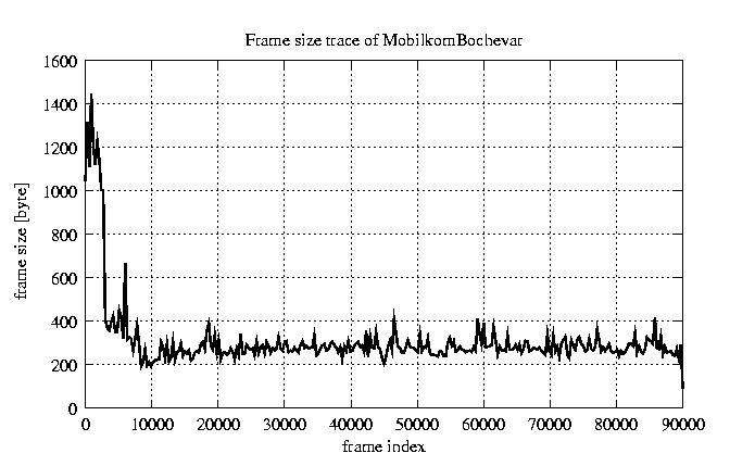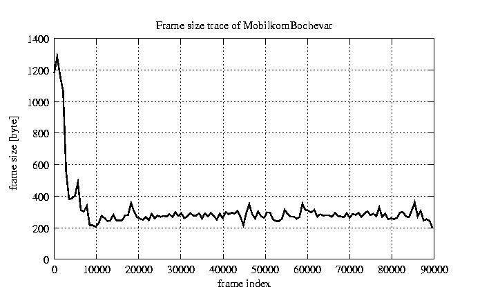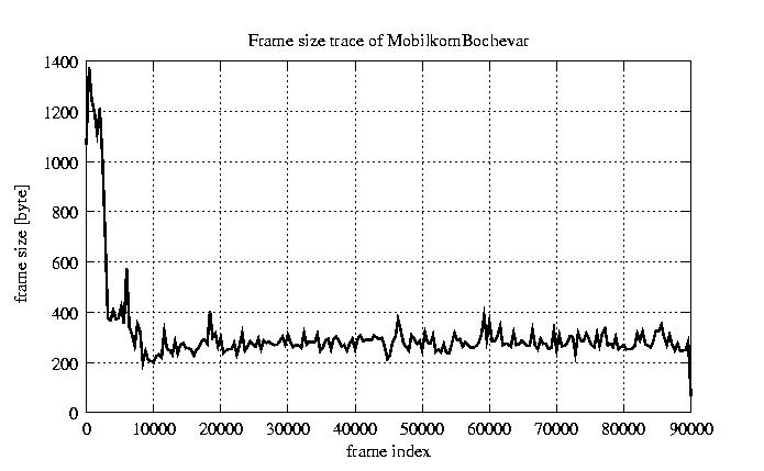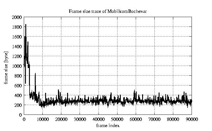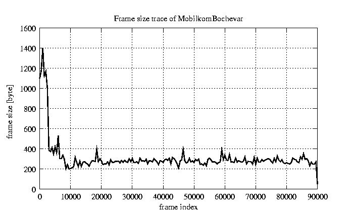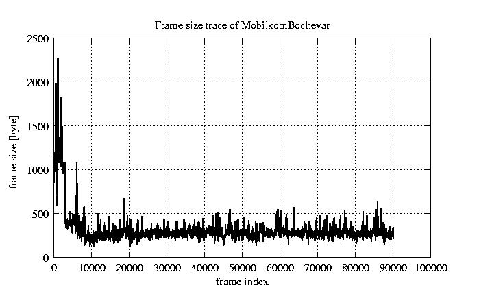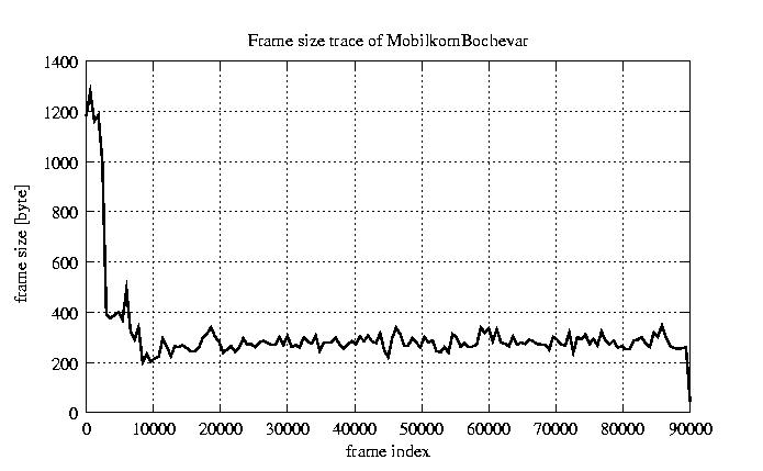 Frames, stuffed Rates Frames, original compression ratio YUV:H263 121.99 121.99 File size byte 2.8e+07 2.8e+07 Video run time msec 3.6e+06 3.6e+06 3.6e+06 # of Frames - 90084.00 45459.00 mean frame size byte 311.65 617.59 var frame size - 164406.95 136854.44 CoV of frame size - 1.30 0.60 min frame size byte 0.00 240.00 max frame size byte 5760.00 5760.00 Peak/Mean frame - 18.48 9.33 Mean bit rate bit/sec 6.2e+04 Peak bit rate bit/sec 9.5e+05 Peak/Mean of bit rate - 15 CoV of bit rate - 0.63 max inter frame space frames 1.00 29.00