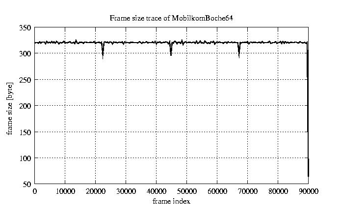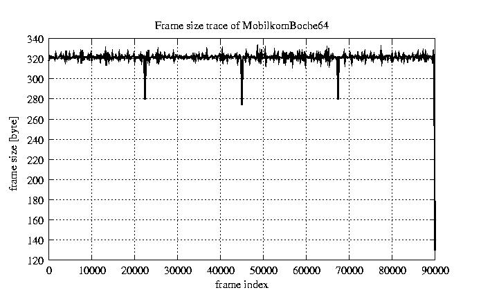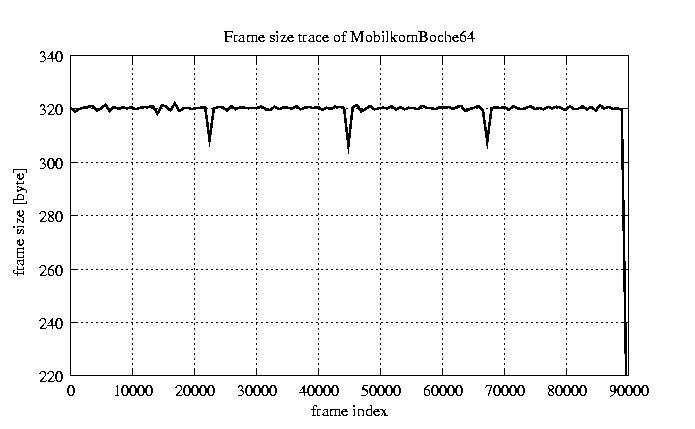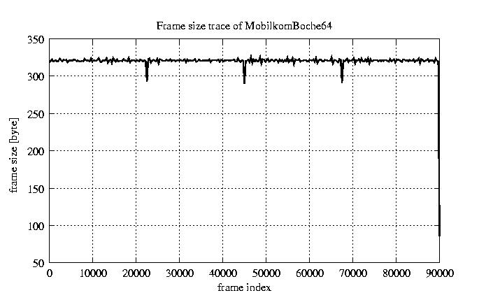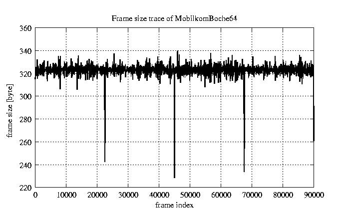 Frames, stuffed Rates Frames, original compression ratio YUV:H263 118.96 118.96 File size byte 2.9e+07 2.9e+07 Video run time msec 3.6e+06 3.6e+06 3.6e+06 # of Frames - 90078.00 16788.00 mean frame size byte 319.59 1714.80 var frame size - 465568.87 105533.02 CoV of frame size - 2.13 0.19 min frame size byte 0.00 386.00 max frame size byte 3272.00 3272.00 Peak/Mean frame - 10.24 1.91 Mean bit rate bit/sec 6.4e+04 Peak bit rate bit/sec 4e+05 Peak/Mean of bit rate - 6.2 CoV of bit rate - 0.48 max inter frame space frames 1.00 34.00