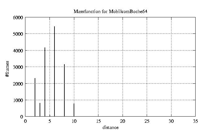 The following figures depict the probability density function p, the probability function F, and the inverse probability function G versus the encoded framelength in bytes.probability density