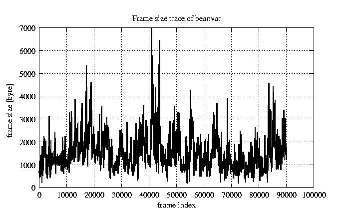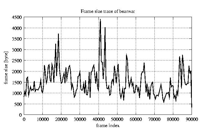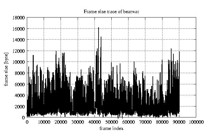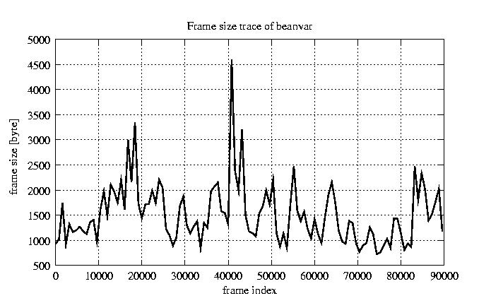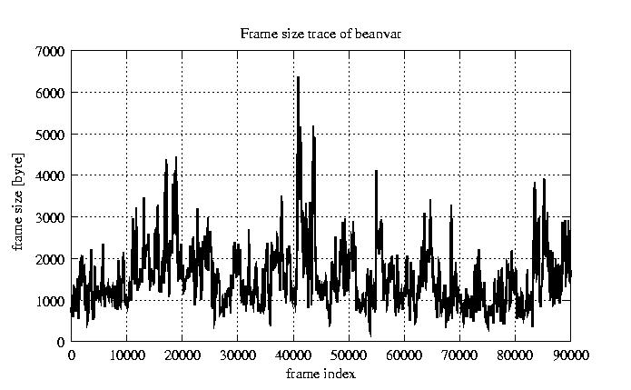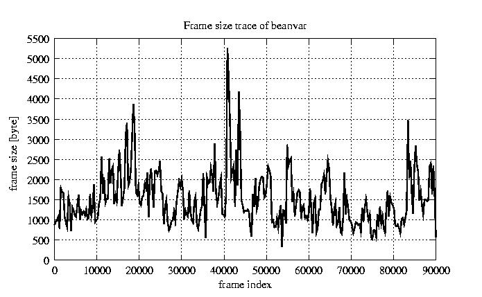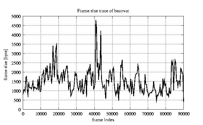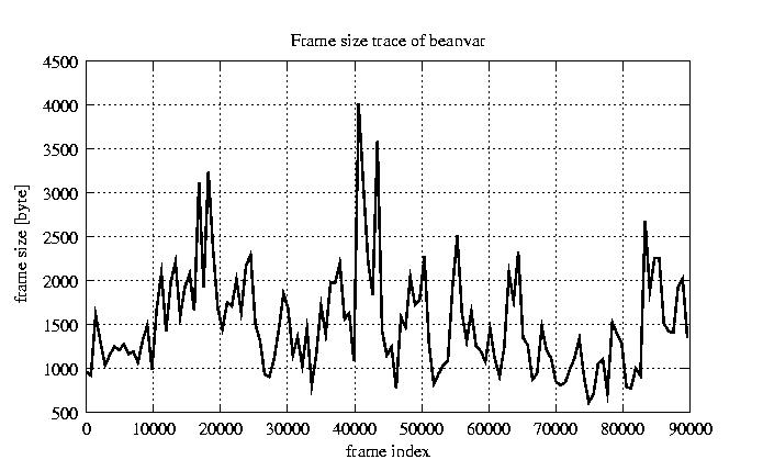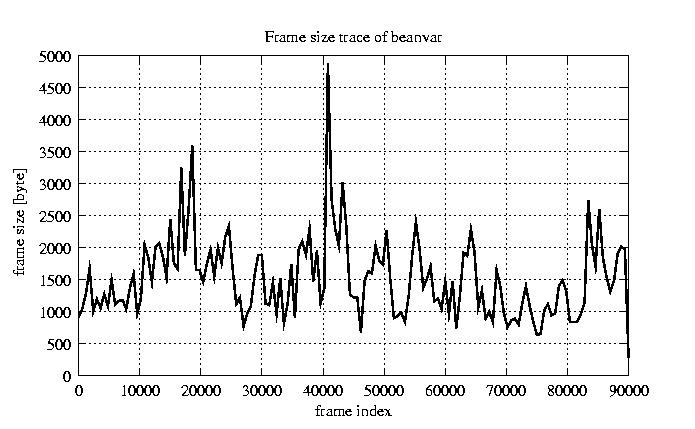 Frames, stuffed Rates Frames, original compression ratio YUV:H263 25.00 25.00 File size byte 1.4e+08 1.4e+08 Video run time msec 3.6e+06 3.6e+06 3.6e+06 # of Frames - 90084.00 51449.00 mean frame size byte 1520.68 2662.61 var frame size - 3175103.94 2518871.08 CoV of frame size - 1.17 0.60 min frame size byte 0.00 40.00 max frame size byte 16221.00 16221.00 Peak/Mean frame - 10.67 6.09 Mean bit rate bit/sec 3e+05 Peak bit rate bit/sec 3.2e+06 Peak/Mean of bit rate - 11 CoV of bit rate - 0.7 max inter frame space frames 1.00 29.00