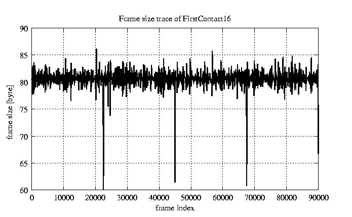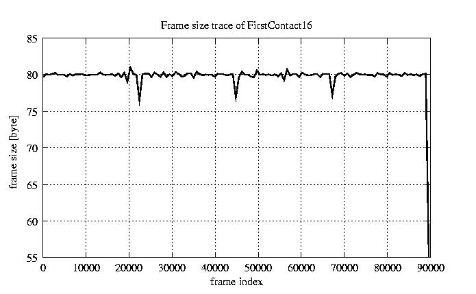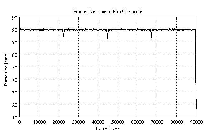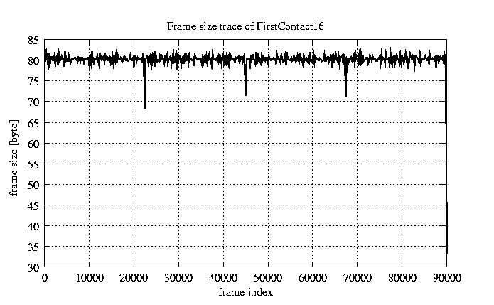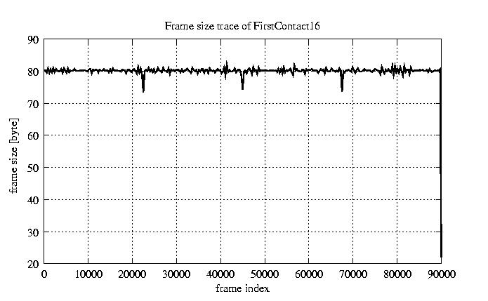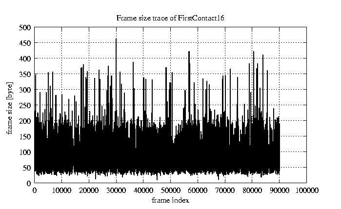 Frames, stuffed Rates Frames, original compression ratio YUV:H263 476.37 476.37 File size byte 7.2e+06 7.2e+06 Video run time msec 3.6e+06 3.6e+06 3.6e+06 # of Frames - 90083.00 22582.00 mean frame size byte 79.81 318.36 var frame size - 29518.30 41807.55 CoV of frame size - 2.15 0.64 min frame size byte 0.00 19.00 max frame size byte 3641.00 3641.00 Peak/Mean frame - 45.62 11.44 Mean bit rate bit/sec 1.6e+04 Peak bit rate bit/sec 9.3e+04 Peak/Mean of bit rate - 5.8 CoV of bit rate - 0.4 max inter frame space frames 1.00 45.00