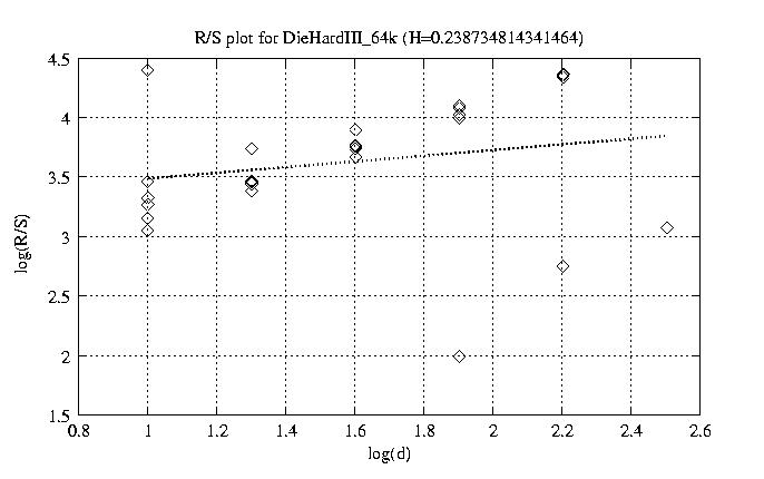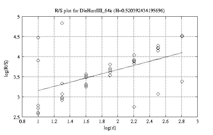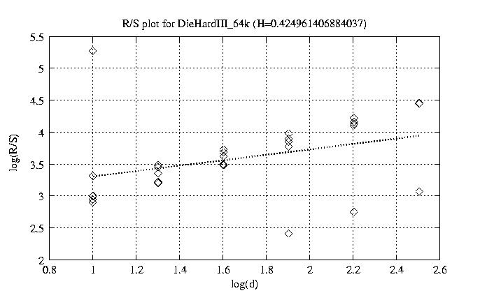 Hurst paramter with R/S plots and smoothed frame size trace