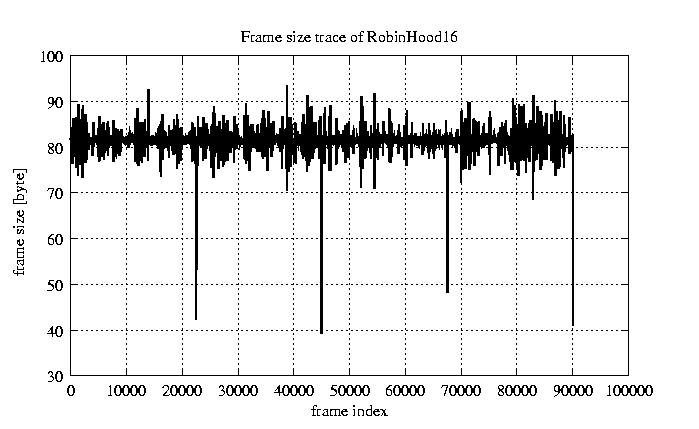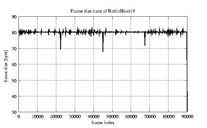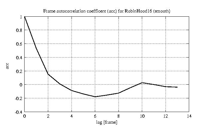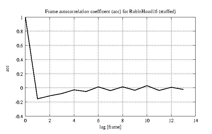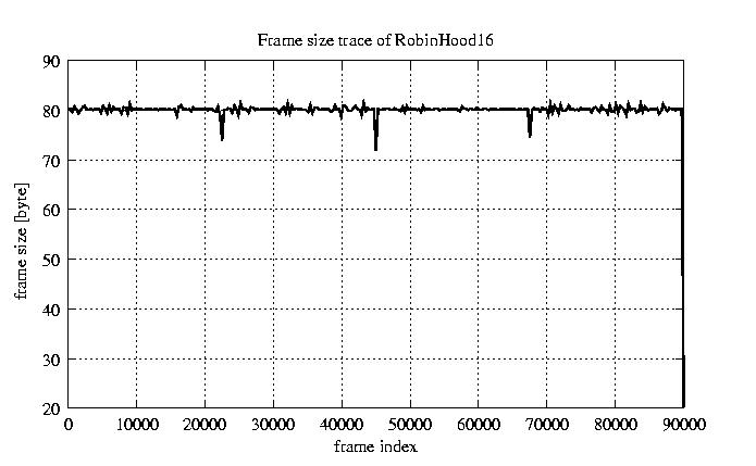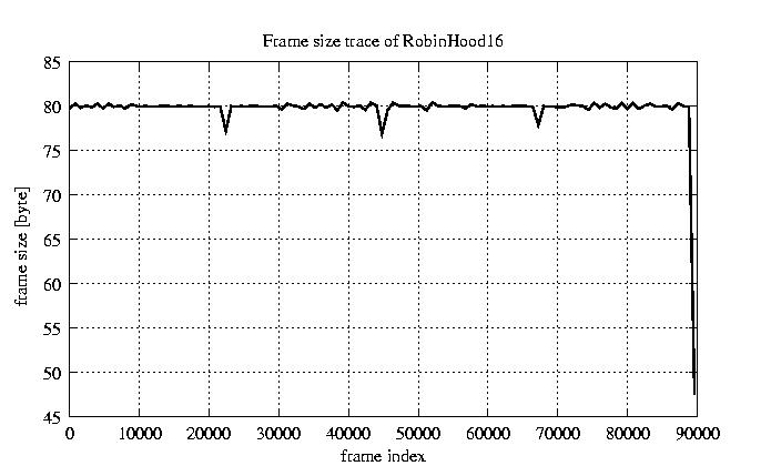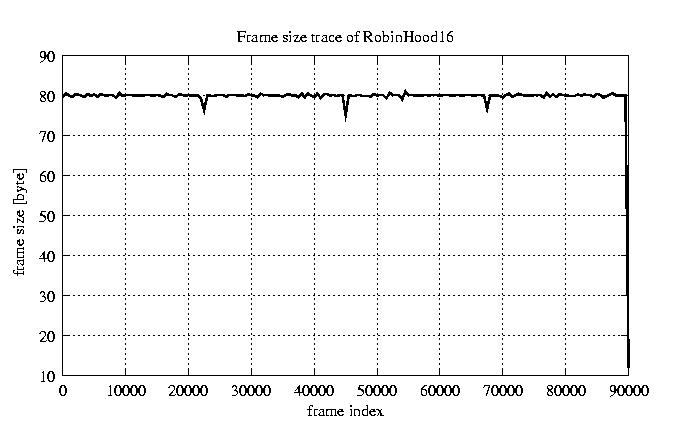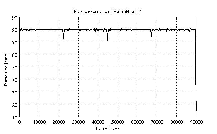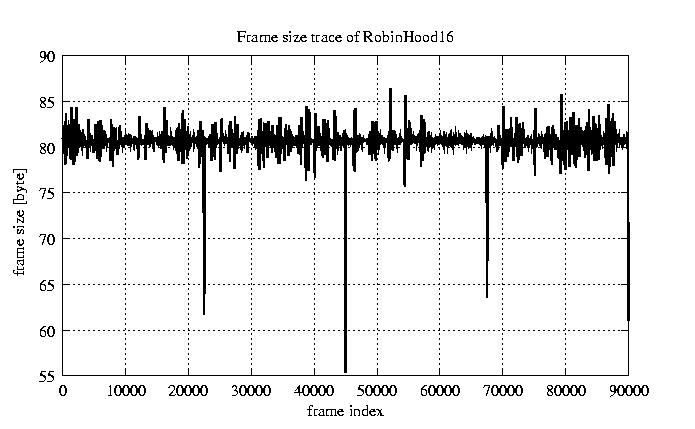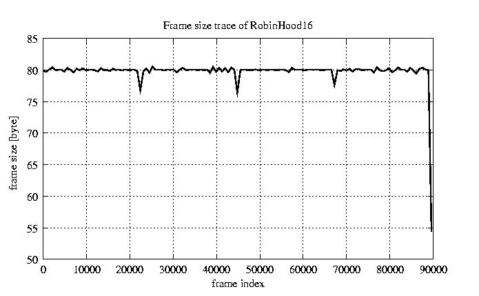 Frames, stuffed Rates Frames, original compression ratio YUV:H263 476.35 476.35 File size byte 7.2e+06 7.2e+06 Video run time msec 3.6e+06 3.6e+06 3.6e+06 # of Frames - 90075.00 17189.00 mean frame size byte 79.81 418.22 var frame size - 40191.87 69085.27 CoV of frame size - 2.51 0.63 min frame size byte 0.00 26.00 max frame size byte 5779.00 5779.00 Peak/Mean frame - 72.41 13.82 Mean bit rate bit/sec 1.6e+04 Peak bit rate bit/sec 1e+05 Peak/Mean of bit rate - 6.5 CoV of bit rate - 0.29 max inter frame space frames 1.00 72.00