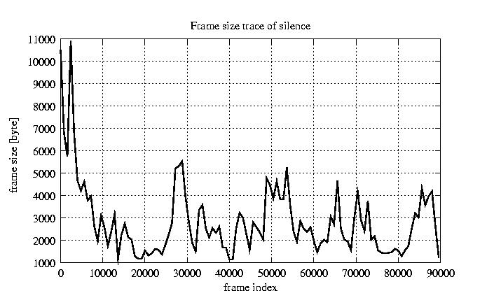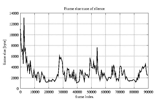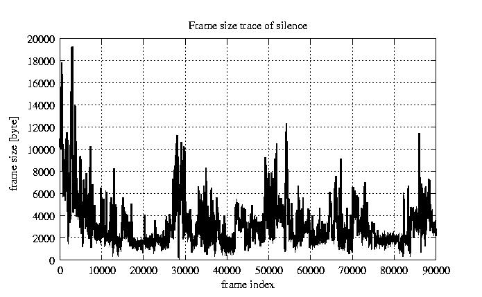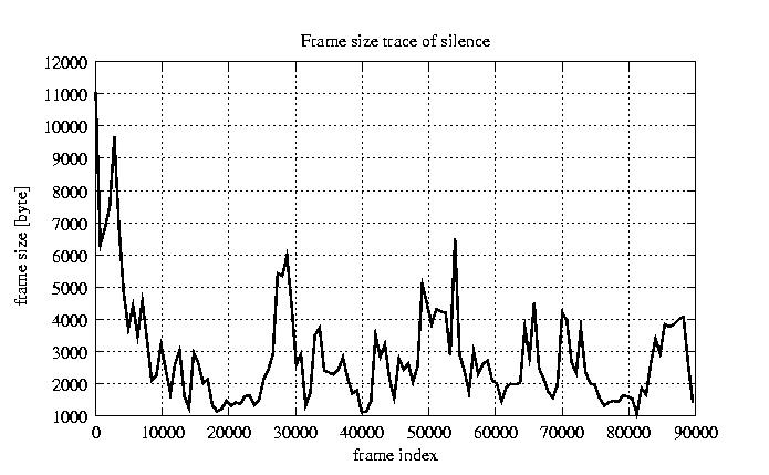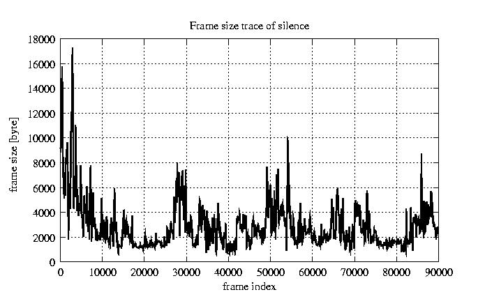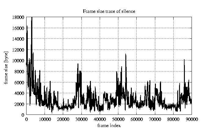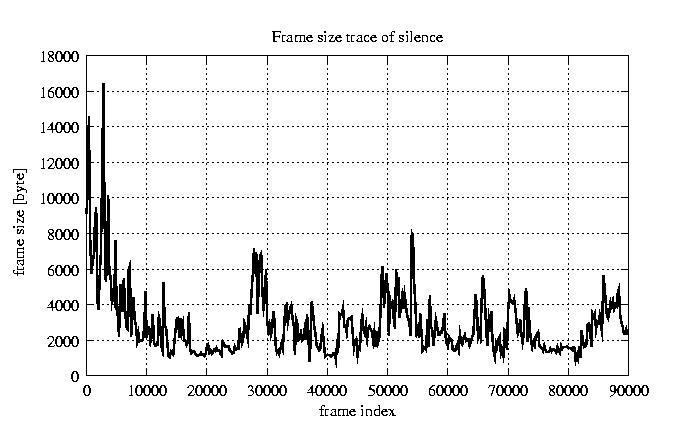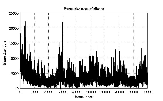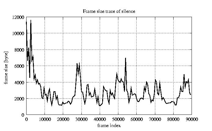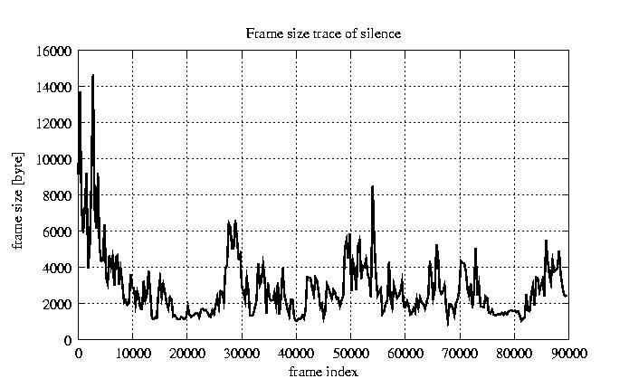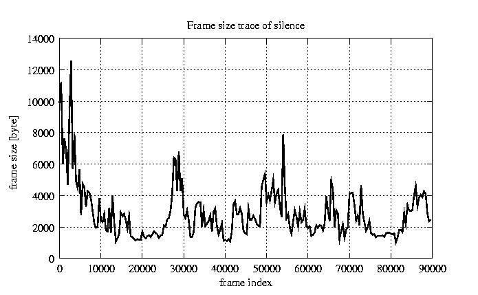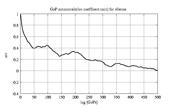 GoP statistics # of GoPs - 7499 mean GoP size byte 3.5e+04 var GoP size - 6e+08 CoV of GoP size - 0.71 min GoP size byte 2858 max GoP size byte 214680 Mean bit rate bit/sec 5.8e+05 Peak bit rate bit/sec 3.6e+06 Peak/Mean of bit rate - 6.22