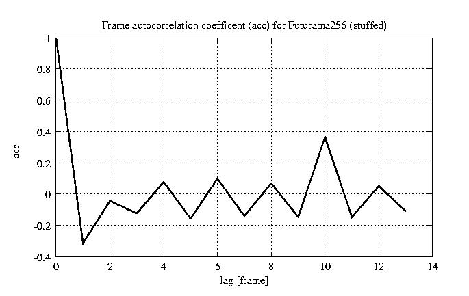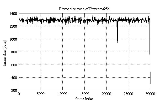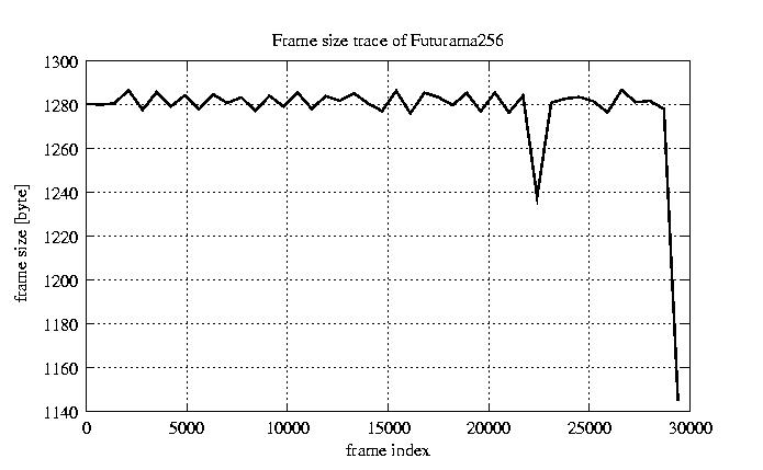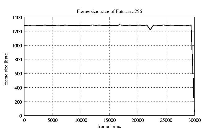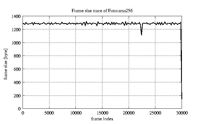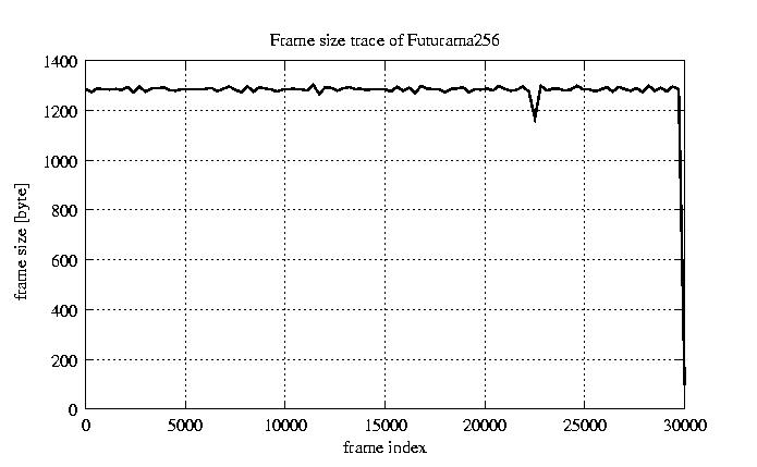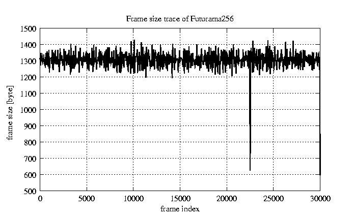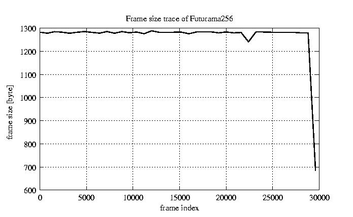Frames, stuffed Rates Frames, original compression ratio YUV:H263 29.73 29.73 File size byte 3.8e+07 3.8e+07 Video run time msec 1.2e+06 1.2e+06 1.2e+06 # of Frames - 30026.00 8295.00 mean frame size byte 1278.89 4629.27 var frame size - 5043907.77 2747663.82 CoV of frame size - 1.76 0.36 min frame size byte 0.00 817.00 max frame size byte 17747.00 17747.00 Peak/Mean frame - 13.88 3.83 Mean bit rate bit/sec 2.6e+05 Peak bit rate bit/sec 1.5e+06 Peak/Mean of bit rate - 5.7 CoV of bit rate - 0.46 max inter frame space frames 1.00 29.00