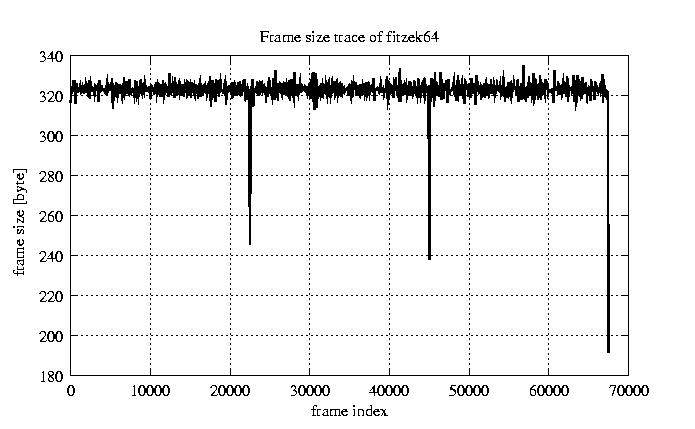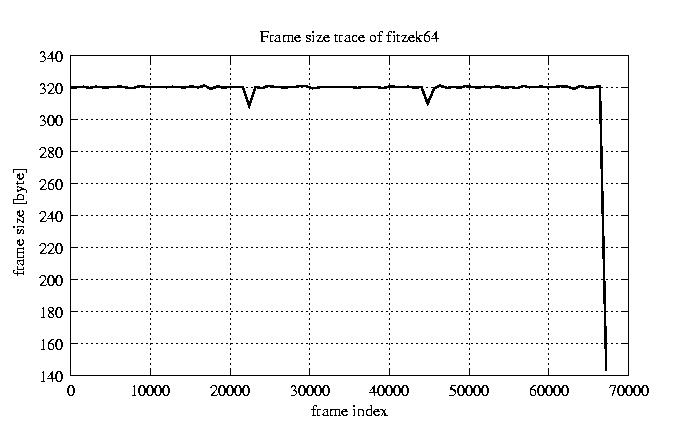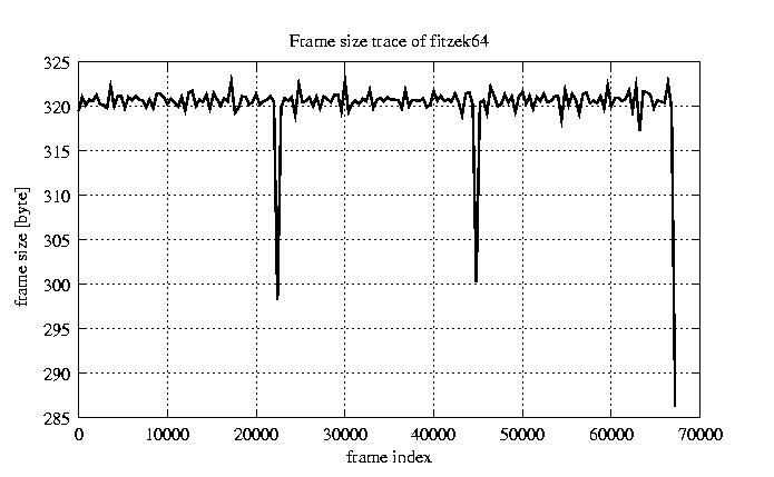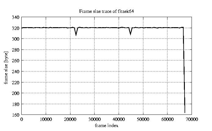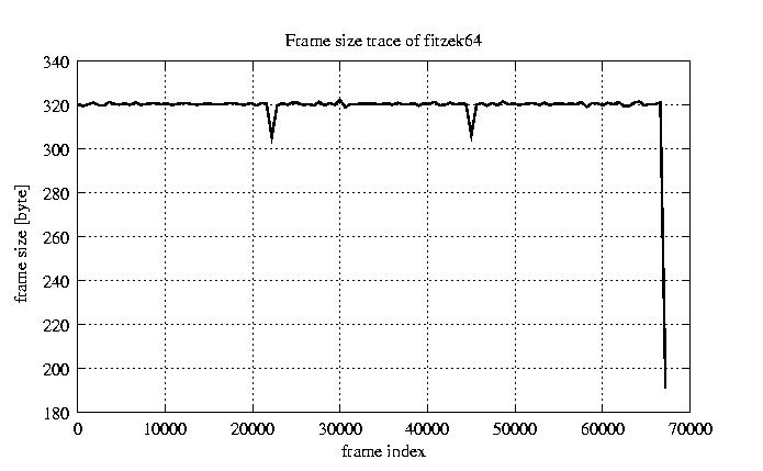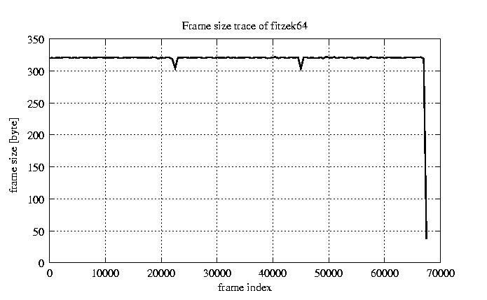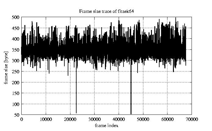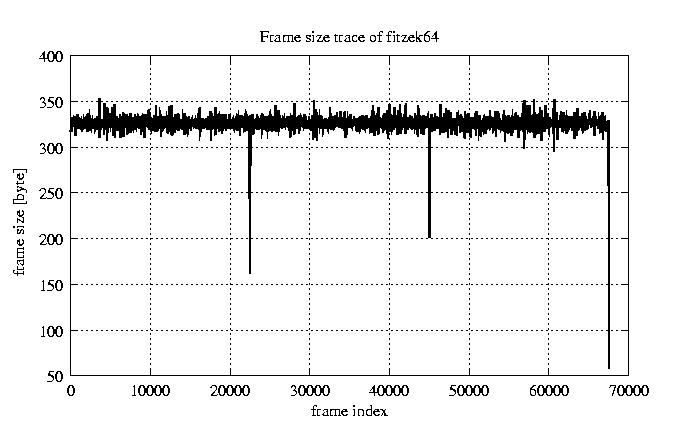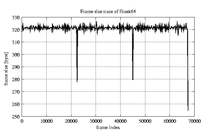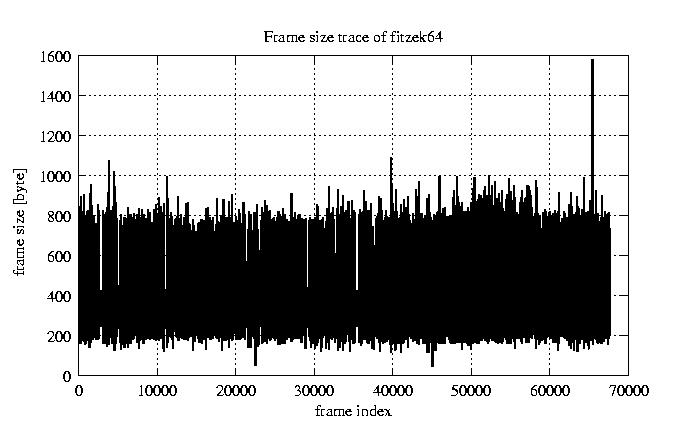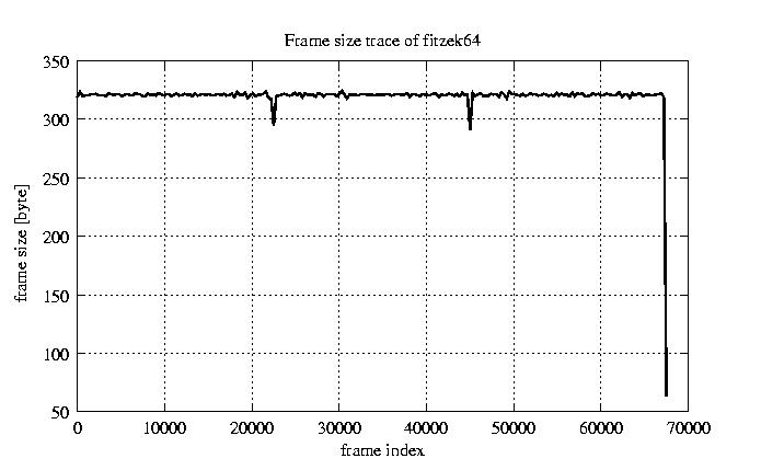 Frames, stuffed Rates Frames, original compression ratio YUV:H263 118.94 118.94 File size byte 2.2e+07 2.2e+07 Video run time msec 2.7e+06 2.7e+06 2.7e+06 # of Frames - 67555.00 13800.00 mean frame size byte 319.63 1564.69 var frame size - 405587.95 37315.83 CoV of frame size - 1.99 0.12 min frame size byte 0.00 279.00 max frame size byte 5191.00 5191.00 Peak/Mean frame - 16.24 3.32 Mean bit rate bit/sec 6.4e+04 Peak bit rate bit/sec 3.2e+05 Peak/Mean of bit rate - 4.9 CoV of bit rate - 0.44 max inter frame space frames 1.00 32.00