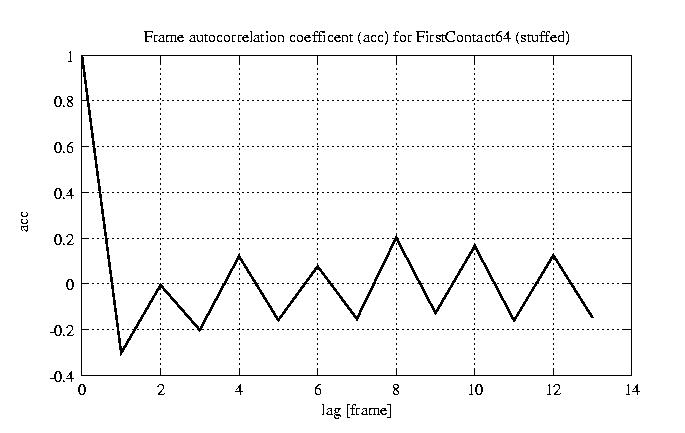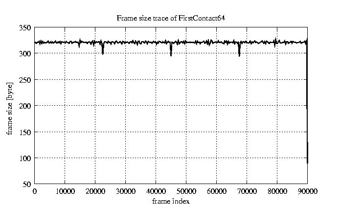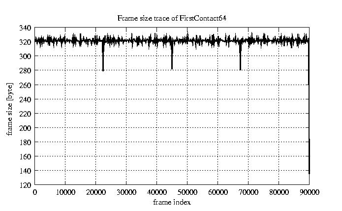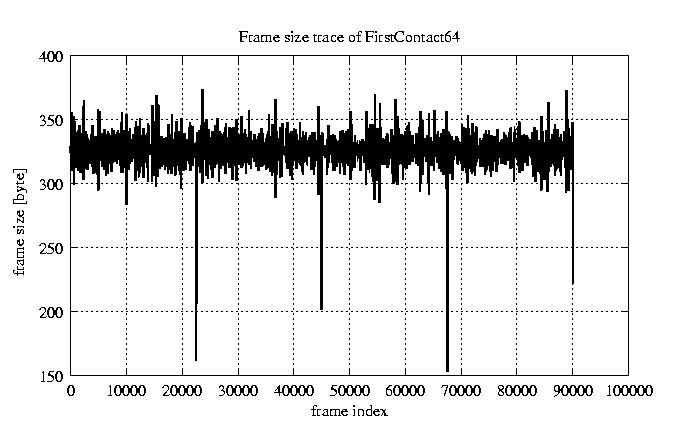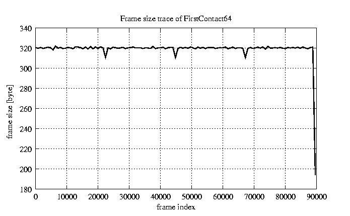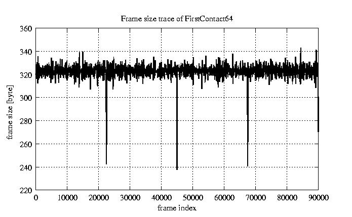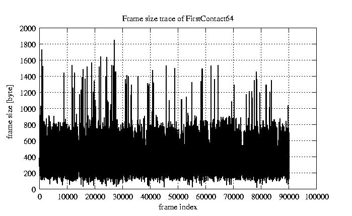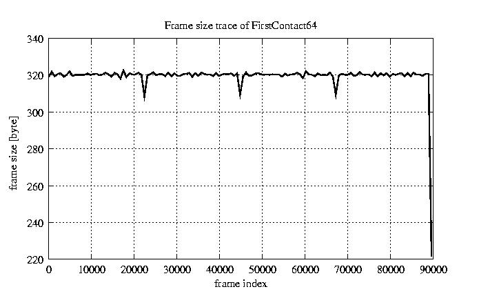 Frames, stuffed Rates Frames, original compression ratio YUV:H263 118.95 118.95 File size byte 2.9e+07 2.9e+07 Video run time msec 3.6e+06 3.6e+06 3.6e+06 # of Frames - 90084.00 26192.00 mean frame size byte 319.62 1099.28 var frame size - 323085.44 254139.79 CoV of frame size - 1.78 0.46 min frame size byte 0.00 19.00 max frame size byte 5864.00 5864.00 Peak/Mean frame - 18.35 5.33 Mean bit rate bit/sec 6.4e+04 Peak bit rate bit/sec 3.7e+05 Peak/Mean of bit rate - 5.8 CoV of bit rate - 0.43 max inter frame space frames 1.00 29.00