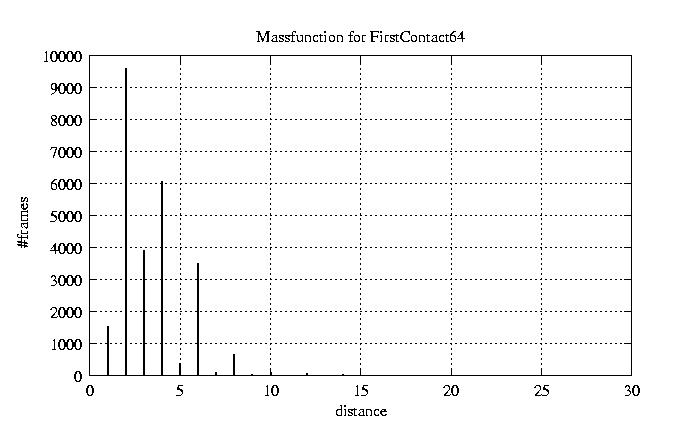 The following figures depict the probability density function p, the probability function F, and the inverse probability function G versus the encoded framelength in bytes.probability density