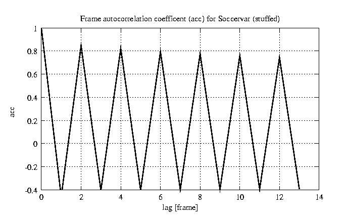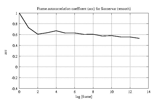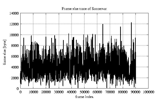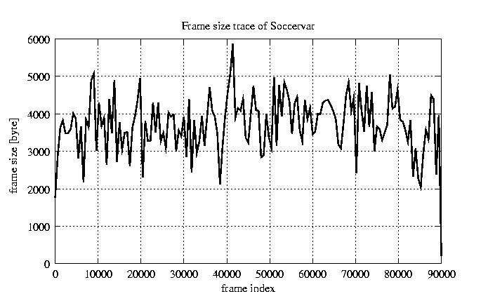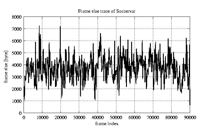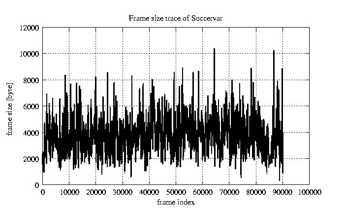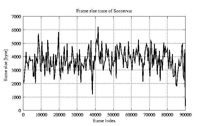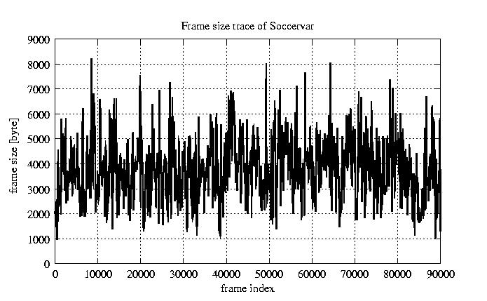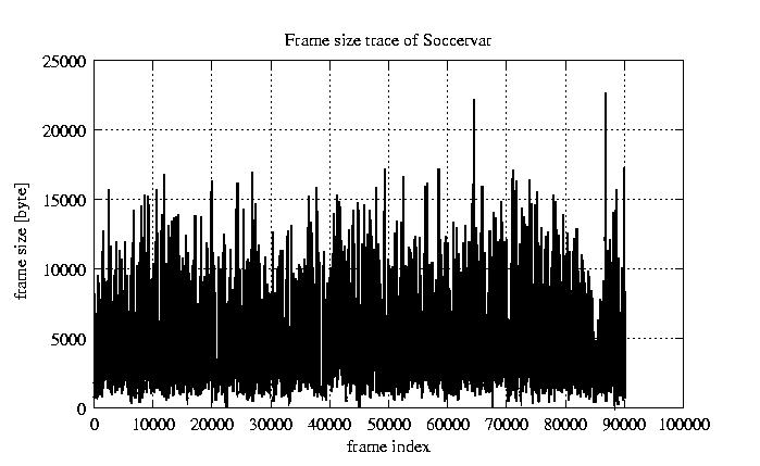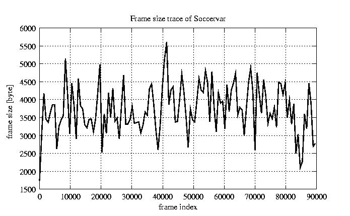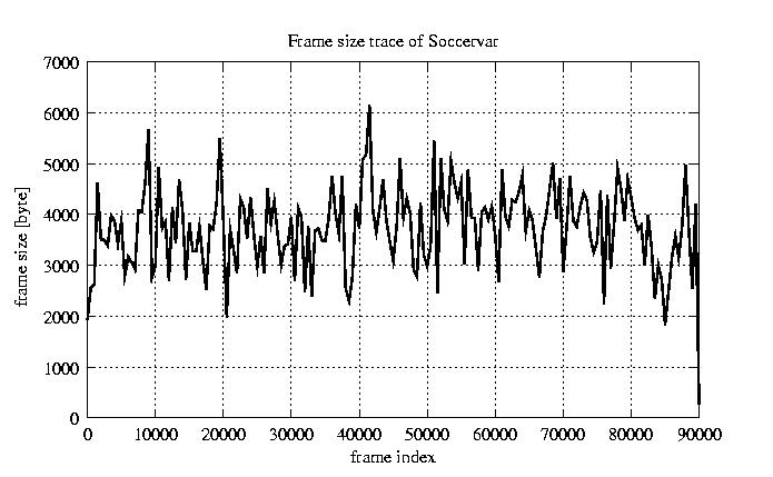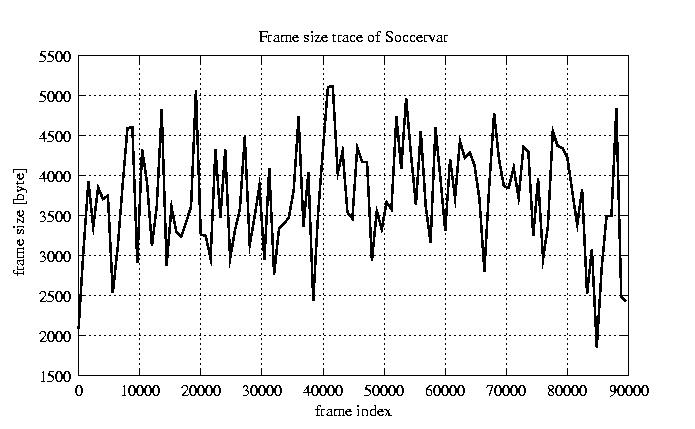 Frames, stuffed Rates Frames, original compression ratio YUV:H263 10.18 10.18 File size byte 3.4e+08 3.4e+08 Video run time msec 3.6e+06 3.6e+06 3.6e+06 # of Frames - 90084.00 60231.00 mean frame size byte 3733.26 5583.62 var frame size - 12113759.48 7786081.67 CoV of frame size - 0.93 0.50 min frame size byte 0.00 483.00 max frame size byte 22641.00 22641.00 Peak/Mean frame - 6.06 4.05 Mean bit rate bit/sec 7.5e+05 Peak bit rate bit/sec 4.5e+06 Peak/Mean of bit rate - 6.1 CoV of bit rate - 0.53 max inter frame space frames 1.00 29.00