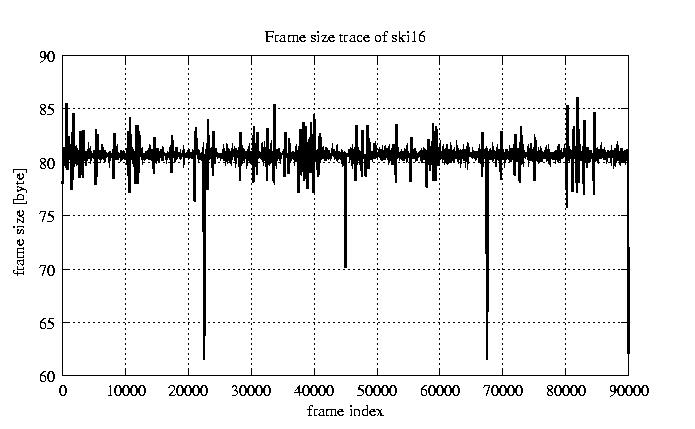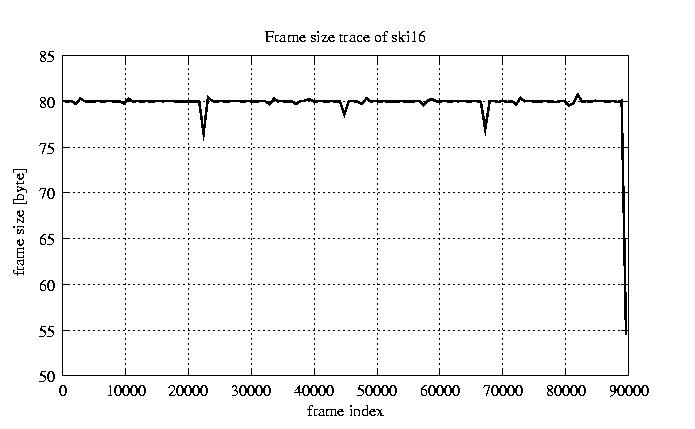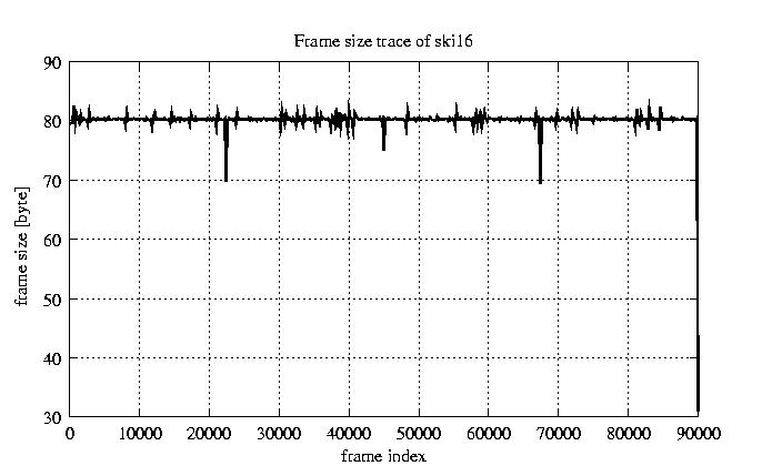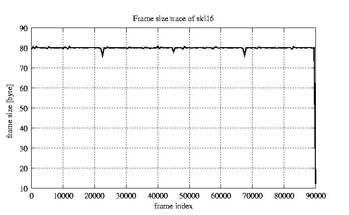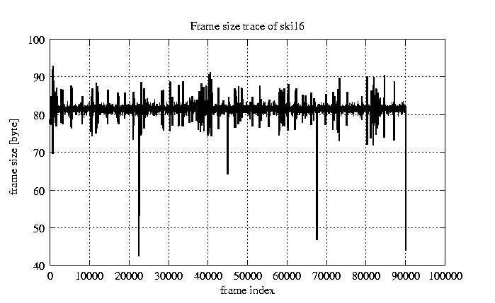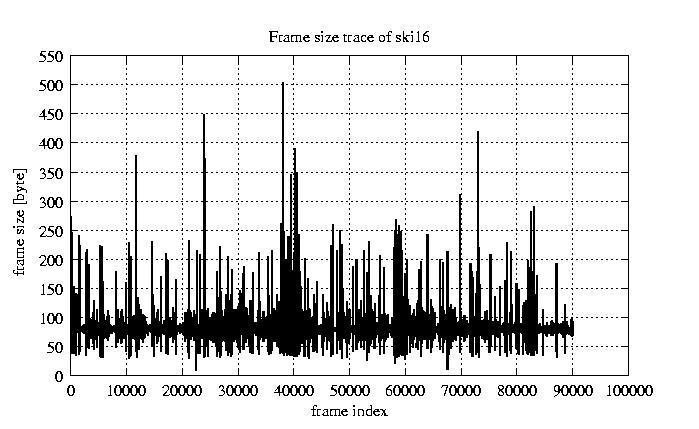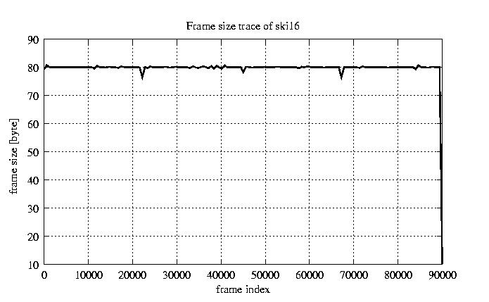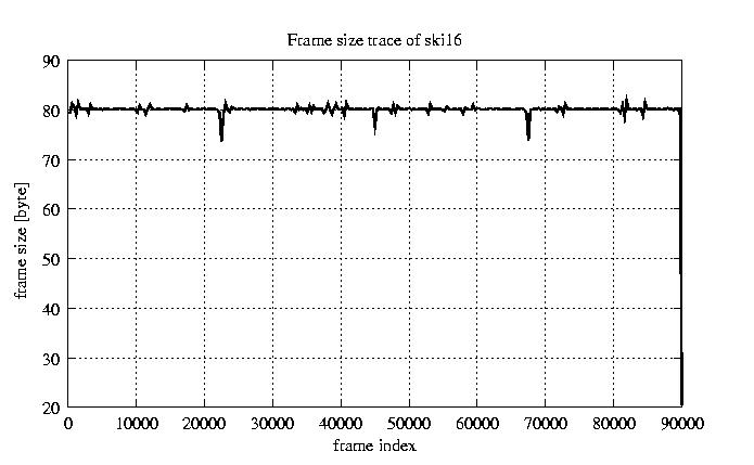 Frames, stuffed Rates Frames, original compression ratio YUV:H263 476.27 476.27 File size byte 7.2e+06 7.2e+06 Video run time msec 3.6e+06 3.6e+06 3.6e+06 # of Frames - 90077.00 15077.00 mean frame size byte 79.82 476.90 var frame size - 50664.13 113325.94 CoV of frame size - 2.82 0.71 min frame size byte 0.00 21.00 max frame size byte 5474.00 5474.00 Peak/Mean frame - 68.58 11.48 Mean bit rate bit/sec 1.6e+04 Peak bit rate bit/sec 1e+05 Peak/Mean of bit rate - 6.3 CoV of bit rate - 0.2 max inter frame space frames 1.00 68.00