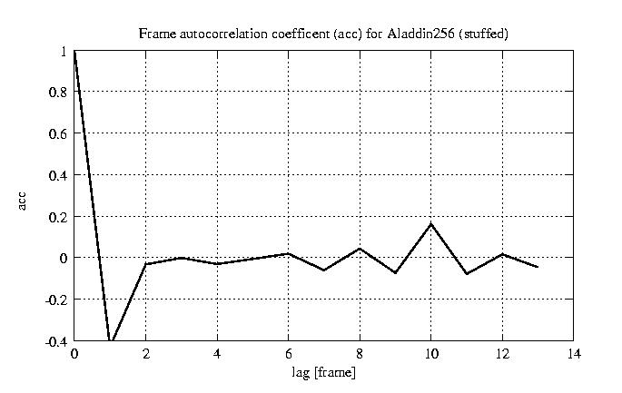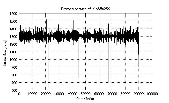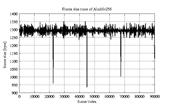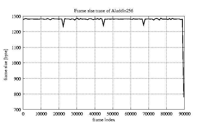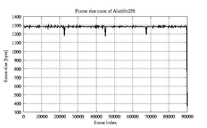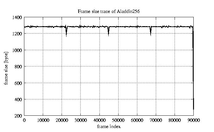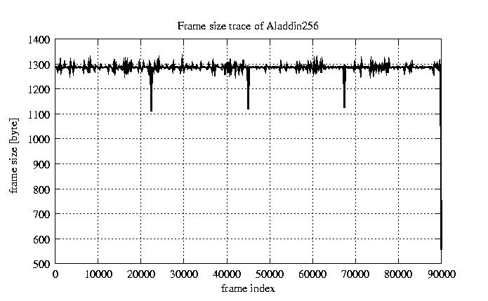 Frames, stuffed Rates Frames, original compression ratio YUV:H263 29.73 29.73 File size byte 1.2e+08 1.2e+08 Video run time msec 3.6e+06 3.6e+06 3.6e+06 # of Frames - 90084.00 31226.00 mean frame size byte 1278.80 3689.22 var frame size - 3684906.98 1737998.79 CoV of frame size - 1.50 0.36 min frame size byte 0.00 687.00 max frame size byte 19303.00 19303.00 Peak/Mean frame - 15.09 5.23 Mean bit rate bit/sec 2.6e+05 Peak bit rate bit/sec 1.4e+06 Peak/Mean of bit rate - 5.6 CoV of bit rate - 0.35 max inter frame space frames 1.00 30.00