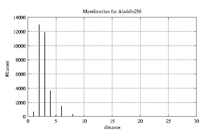 The following figures depict the probability density function p, the probability function F, and the inverse probability function G versus the encoded framelength in bytes.probability density