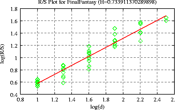 | R/S aggregation 200, Hurst=0.752845550869384 |
