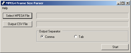 Parses the standard MPEG4 bitstream for frame boundaries and prints the frame sizes into a file.The output format is CSV or tabbed for easy use in spreadsheet applications. |