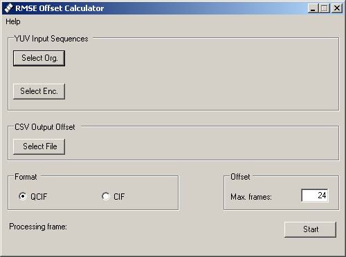 Video Offset Distortion Calculator Calculates the video offset distortion from two raw YUV 4:2:0 sequences and prints the results into a file. The output format is CSV for easy use in spreadsheet applications. |